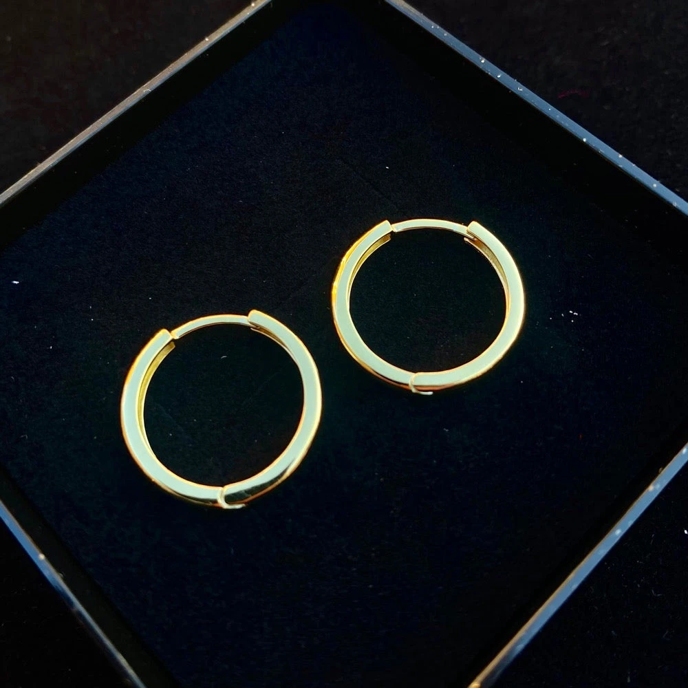 A large 18MM Hoop designed for Men. Gold 925 Sterling Silver Hoop Earring is a simple Large Hoop. The Earring hangs just below the ear for a stylish & classic Look.
