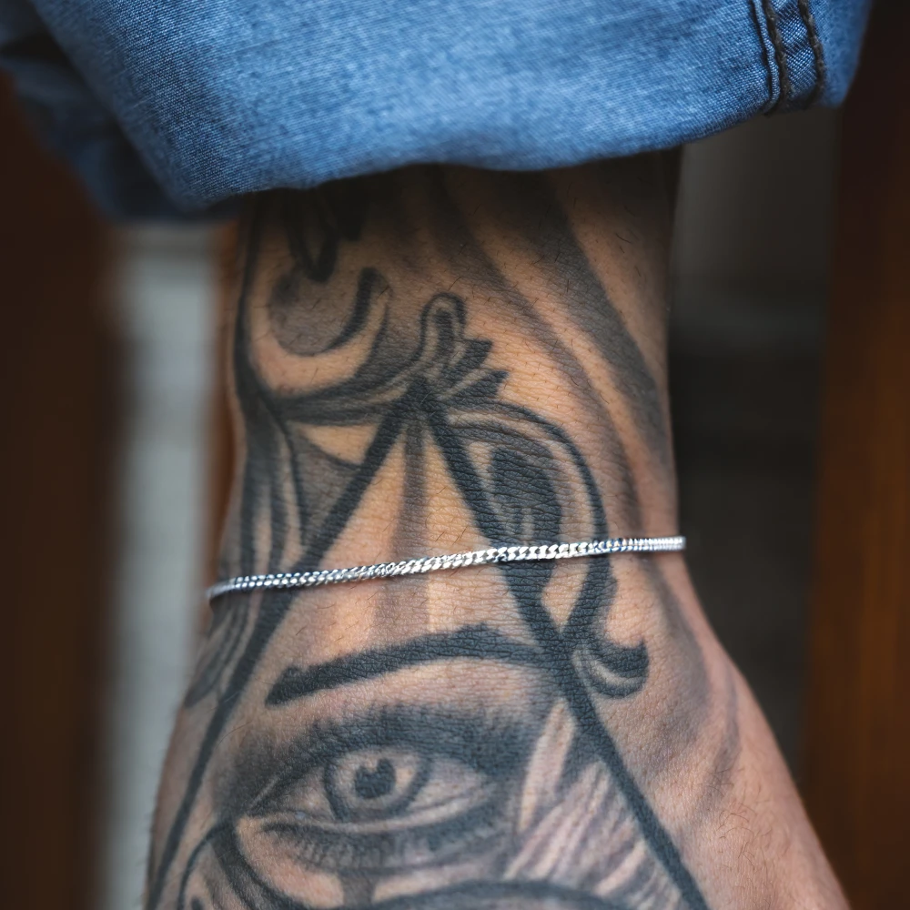 Thin 2mm Rhodium Plated Miami Cuban Bracelet. A solid 925 Sterling Silver chain complete with a super strong Lobster Clasp.