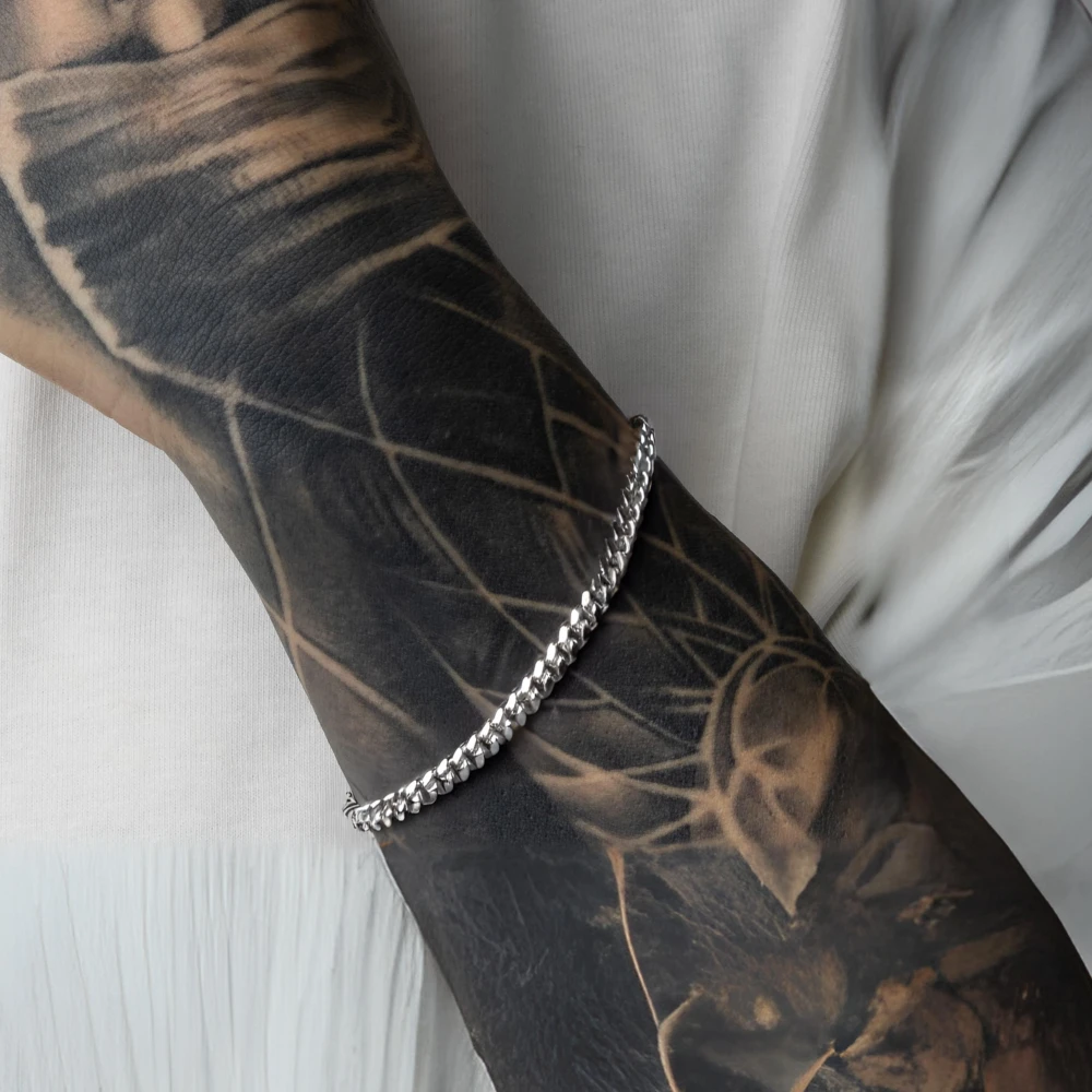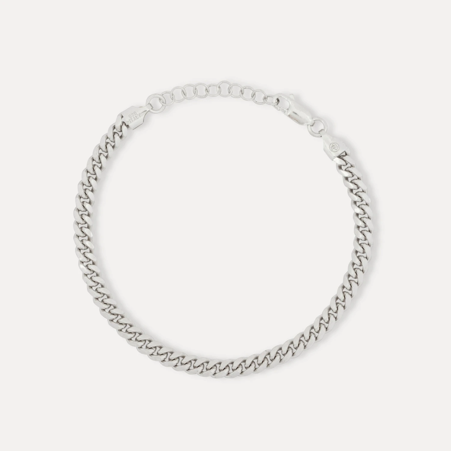Italian made 925 Sterling Medium Thickness Silver Miami Cuban Bracelet. A Great thickness for wearing everyday. Finished with a rhodium plating.