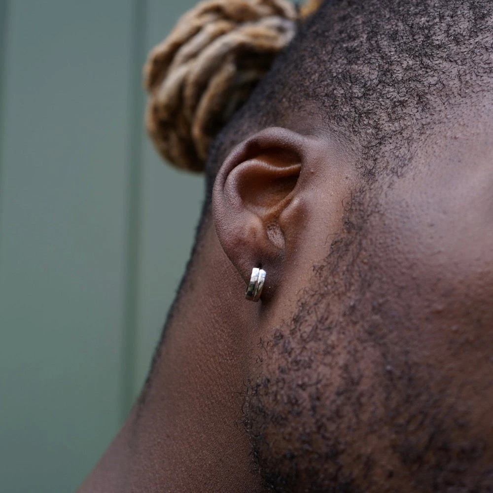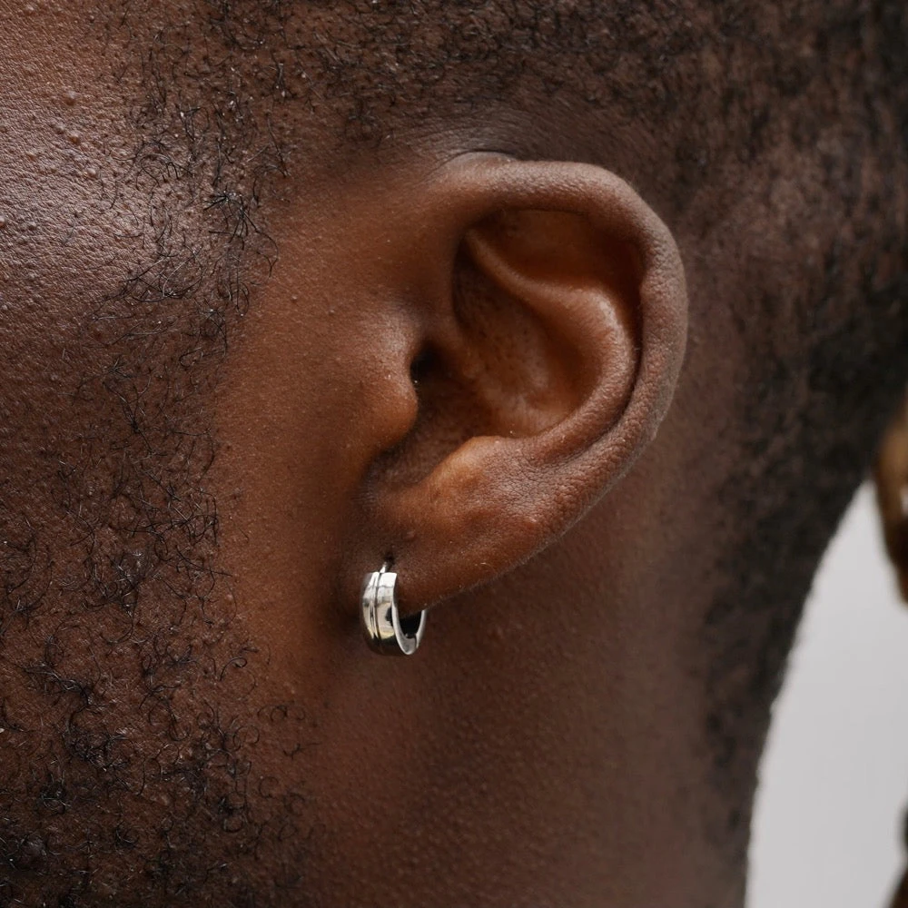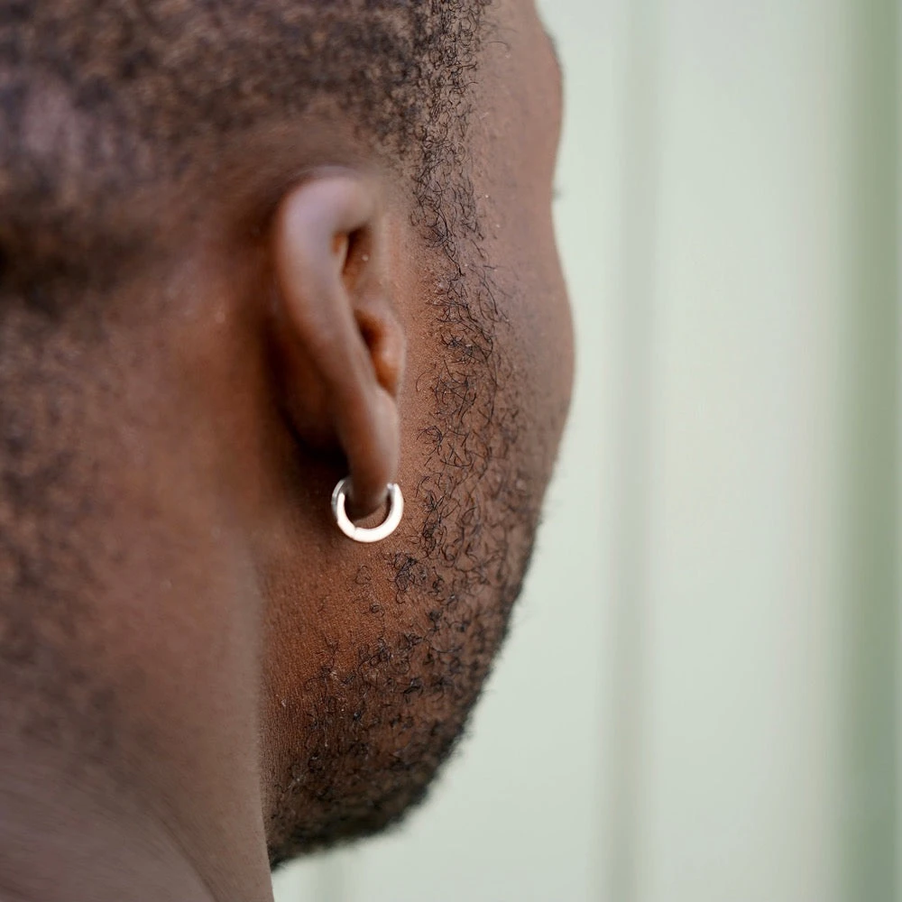 A simple styled hoop designed for Men. The Earring hangs close to the ear for a thick style huggie look. No tarnishing or fading! Perfect for wearing daily.