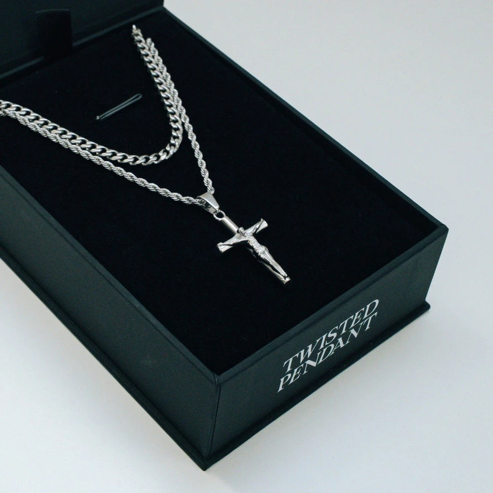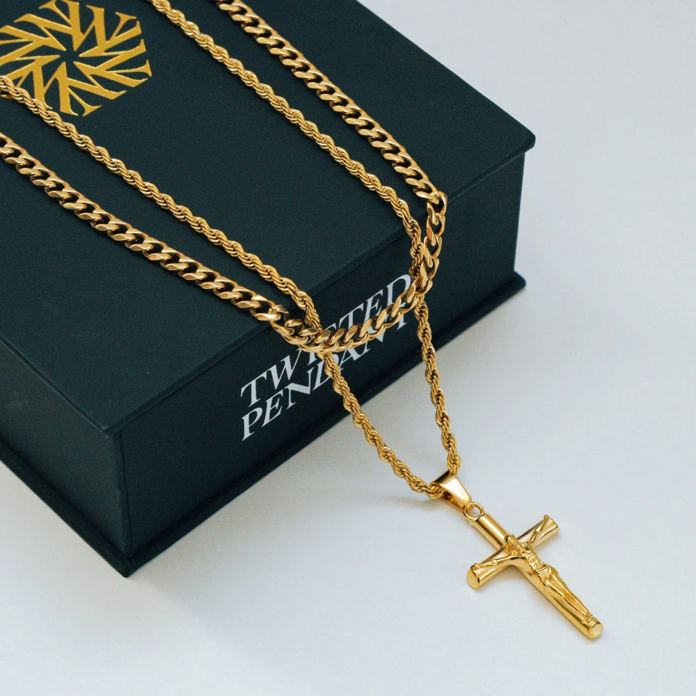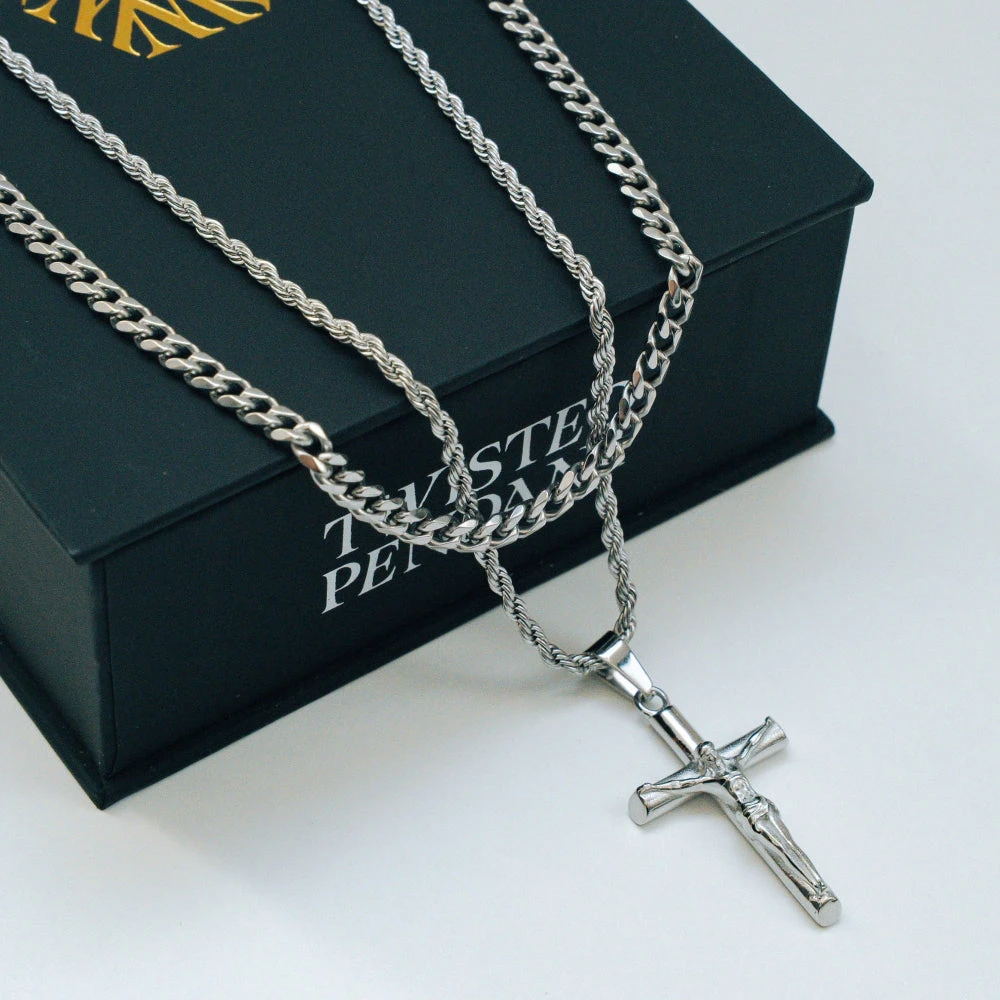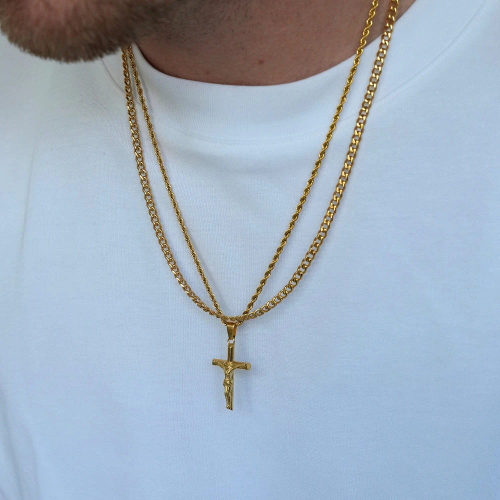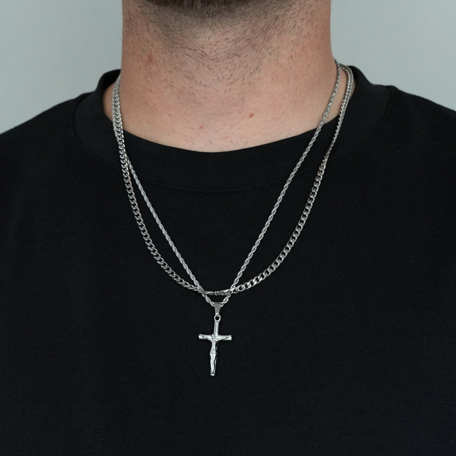Includes 1 Crucifix Pendant, 1 x 22″ Rope Chain, and 1 x Cuban Chain