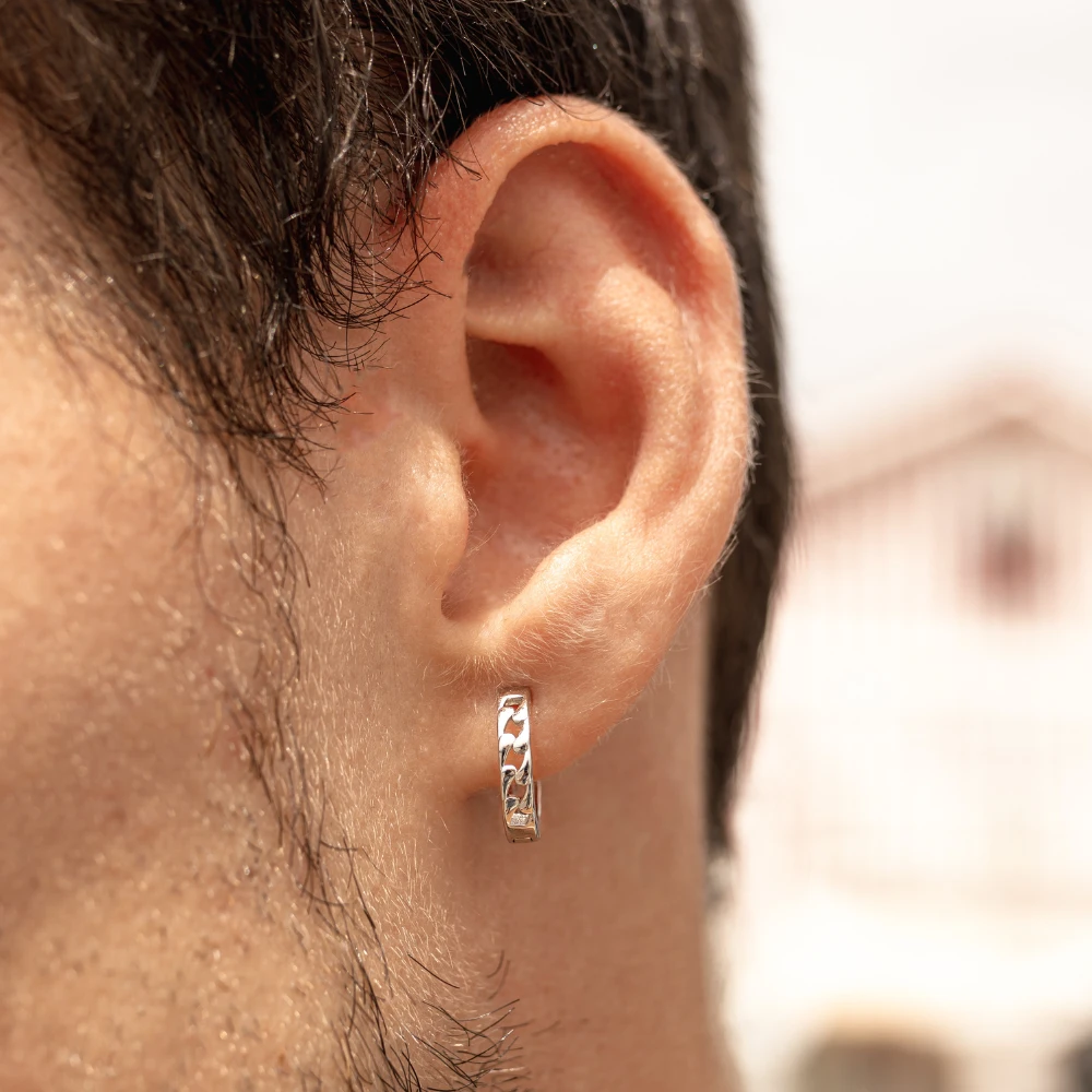 Our 925 Sterling Silver Cuban Link hoop earring.