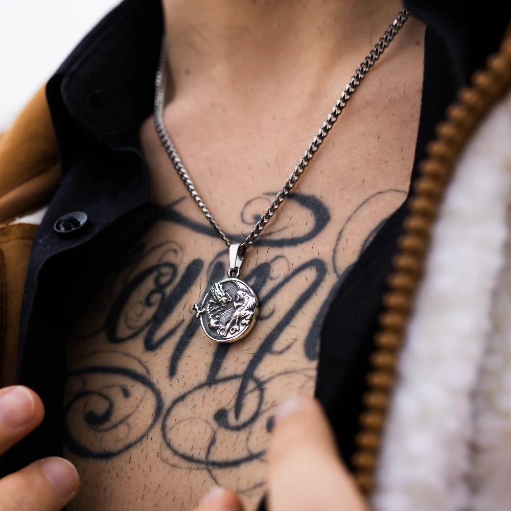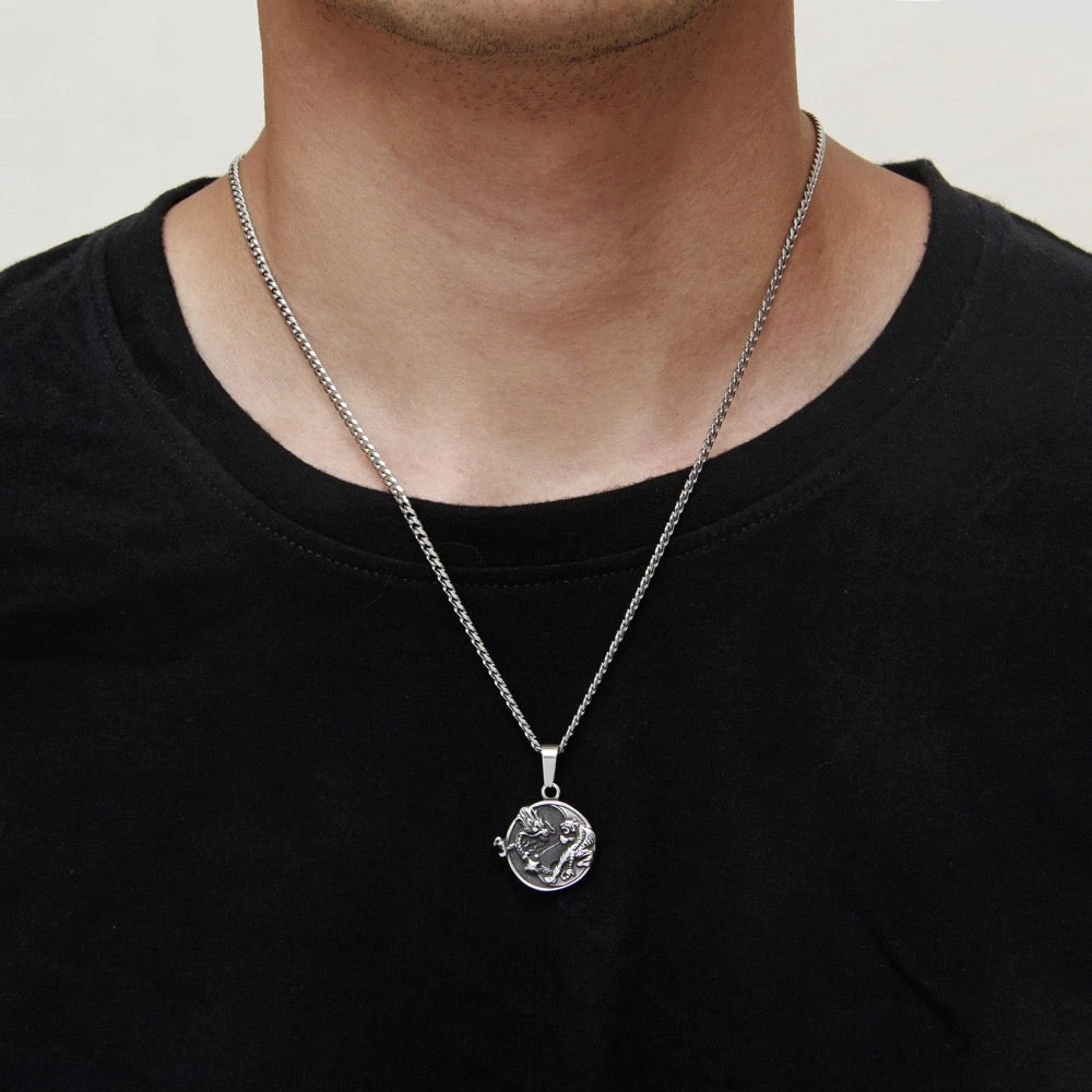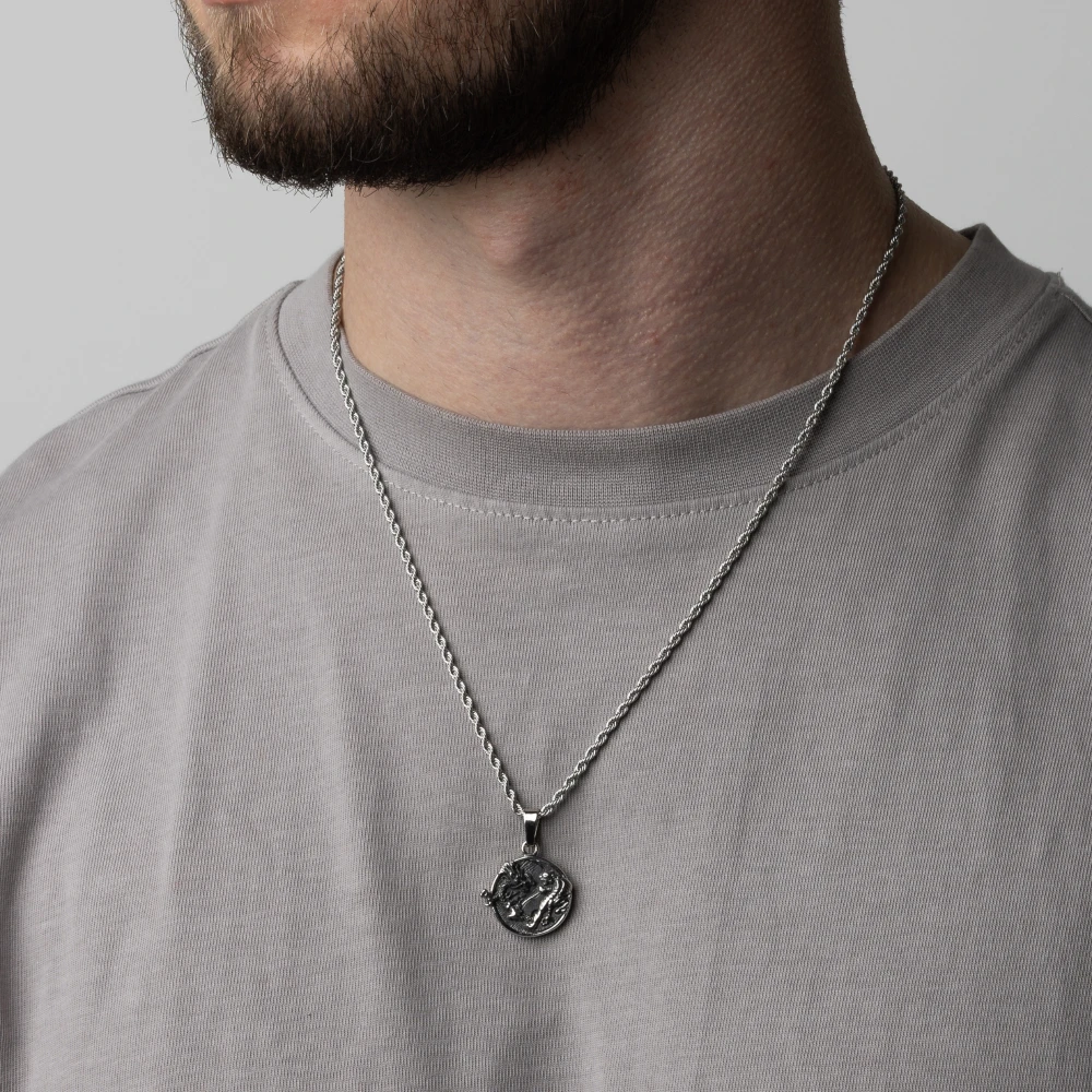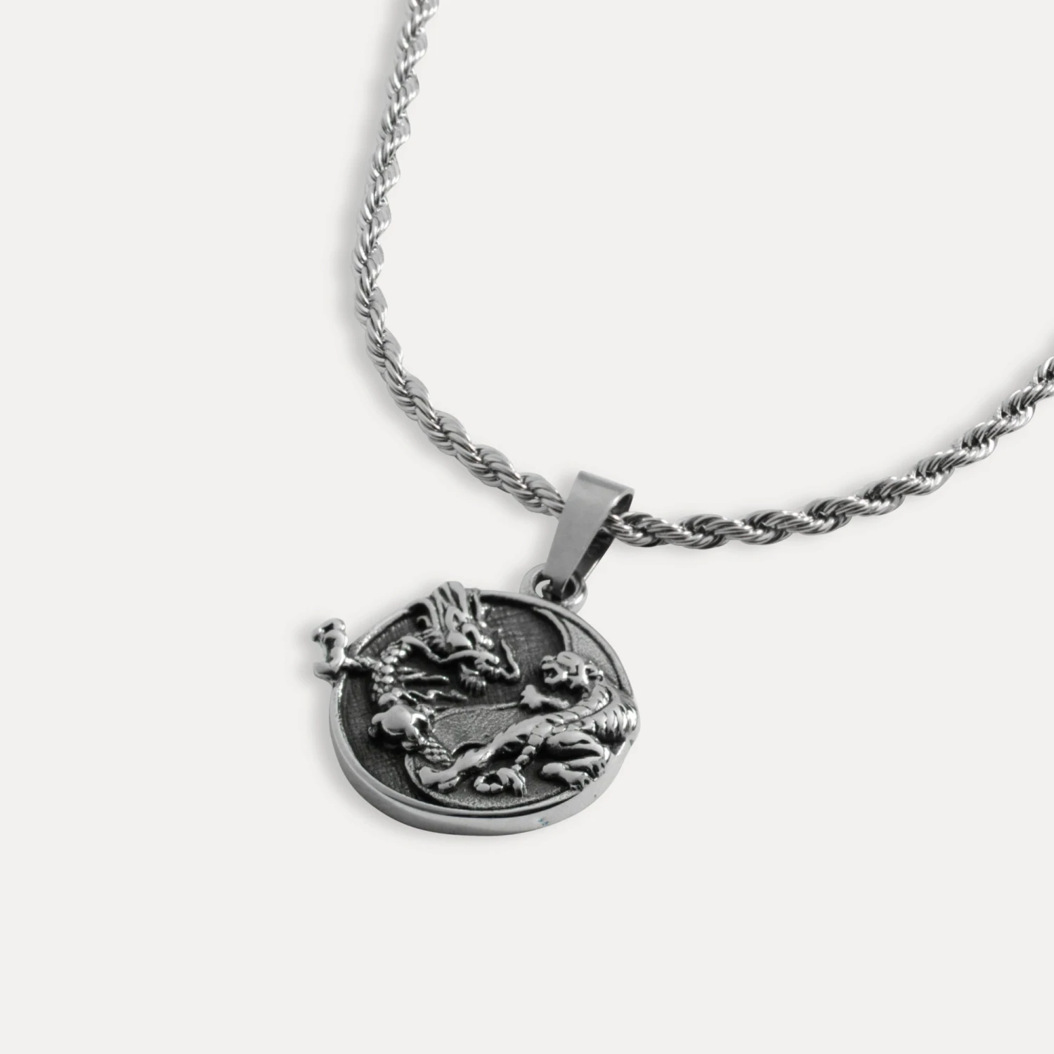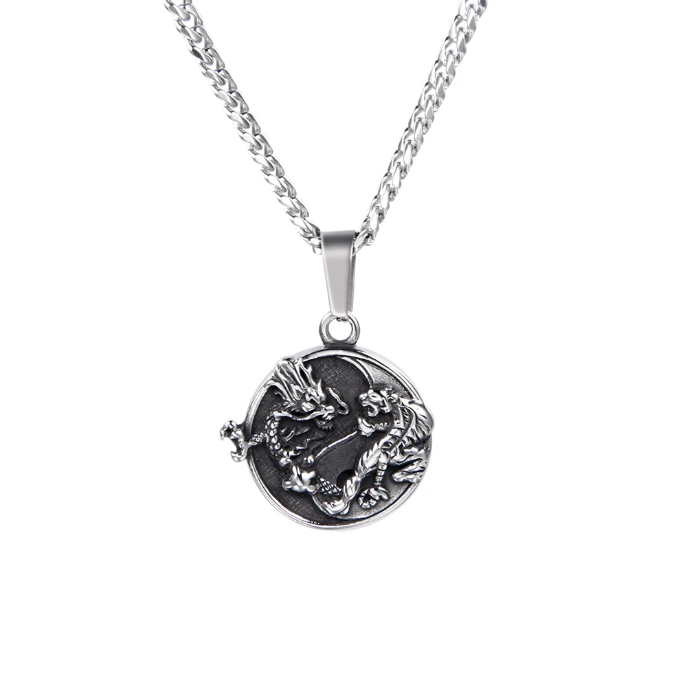 The Dragon & Tiger Ying Yang pendant is a polished silver on one side of the pendant and a darker vintage silver one the opposite.