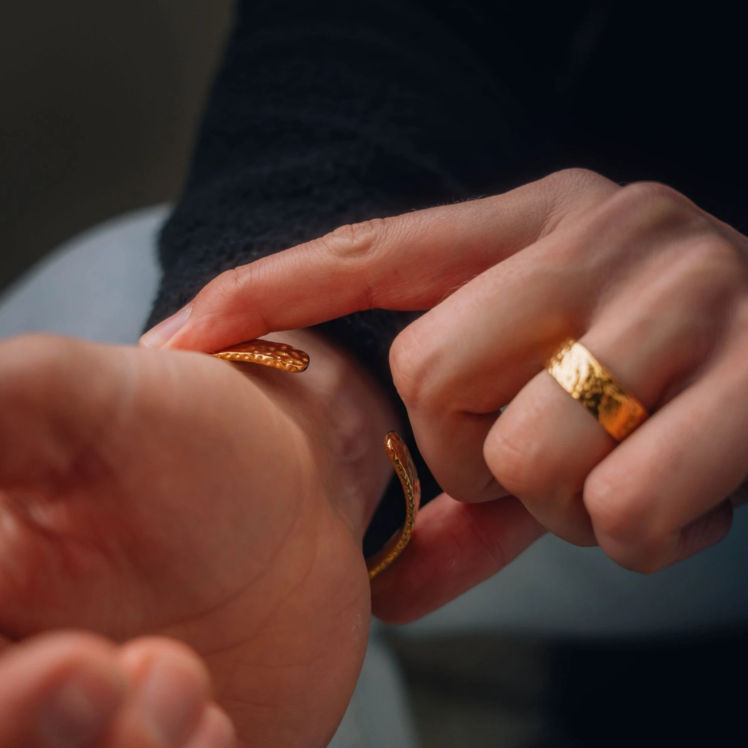 Hammered & Polished, this 18k Gold cuff bracelet is a classy addition to our bracelet collection. Minimalist design with a polished finish – completed with the ‘Twistedpendant Premium Jewellery’ engraving.