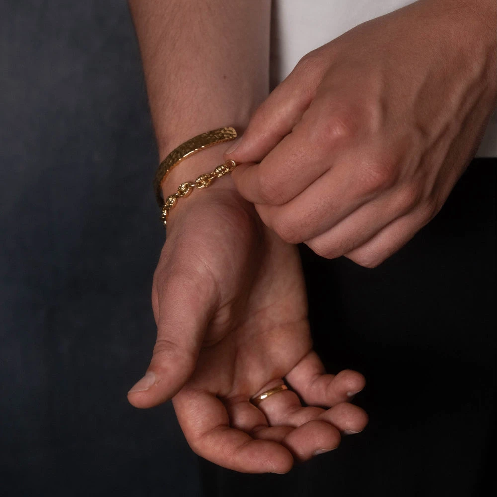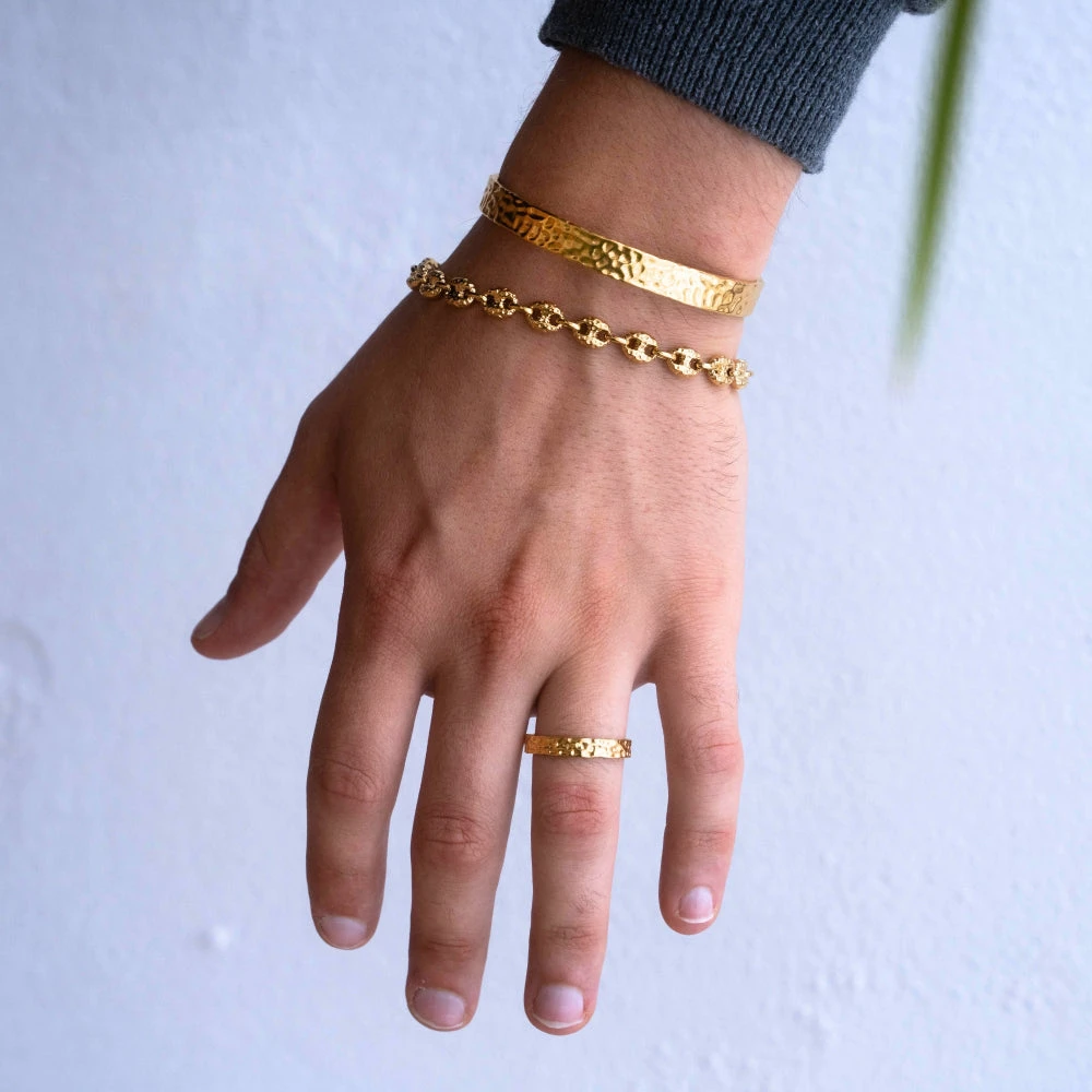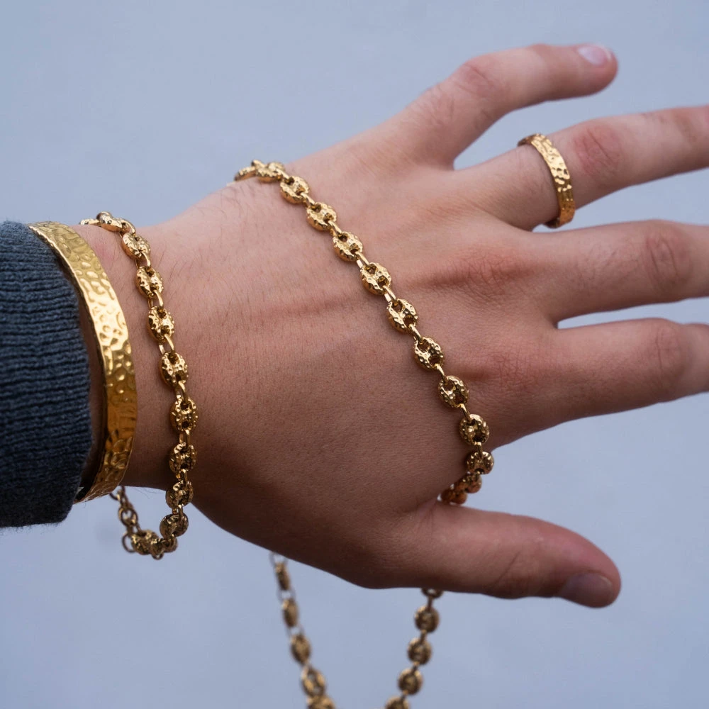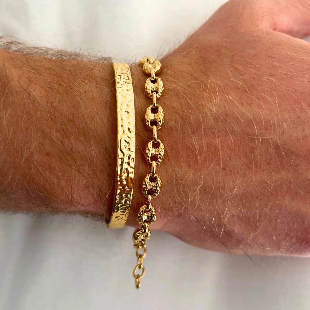 A piece made for summer! Hammered texture with chunky coffee bean styled links. Pairs well with any rings and bracelets. The best combo: Hammered mariner & hammered cuff!