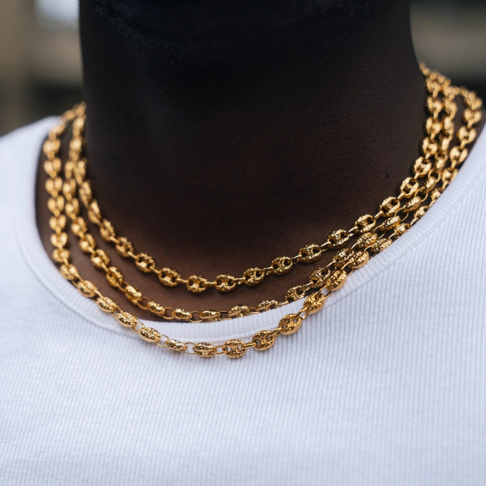 A piece made for summer! Hammered texture with chunky coffee bean styled links.