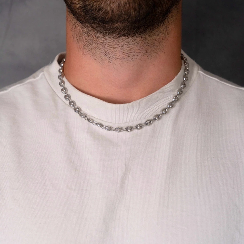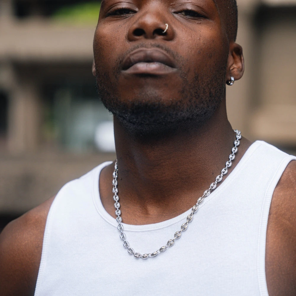 This chain is made from Recycled Stainless Steel. This chain will not tarnish, rust or turn your skin green. Safe to wear in water & is more durable than other materials commonly used such as Silver & Gold.