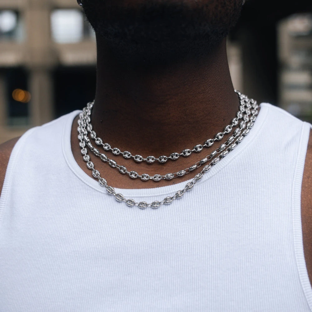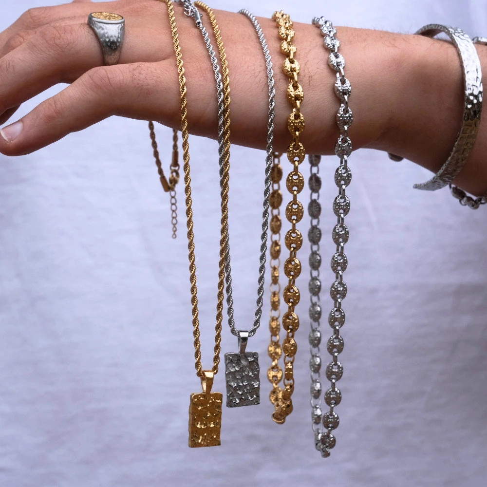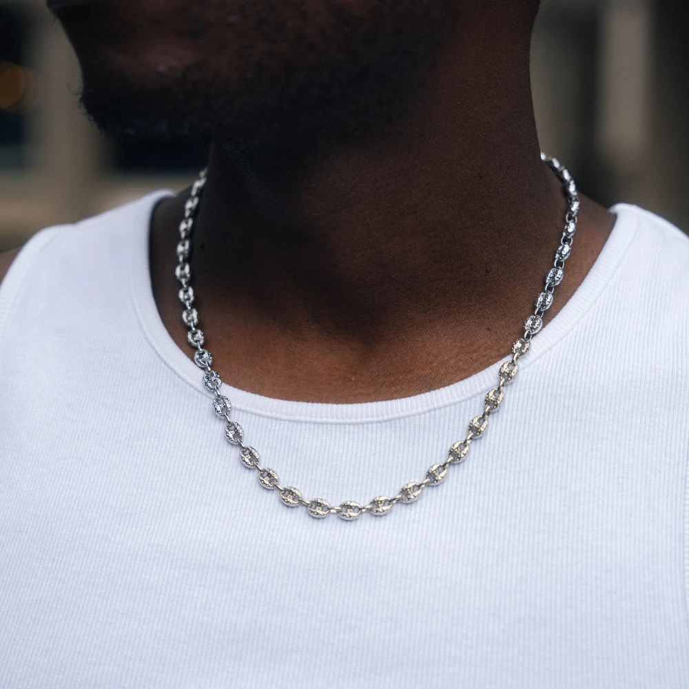 A piece made for summer! Hammered texture with chunky coffee bean styled links.