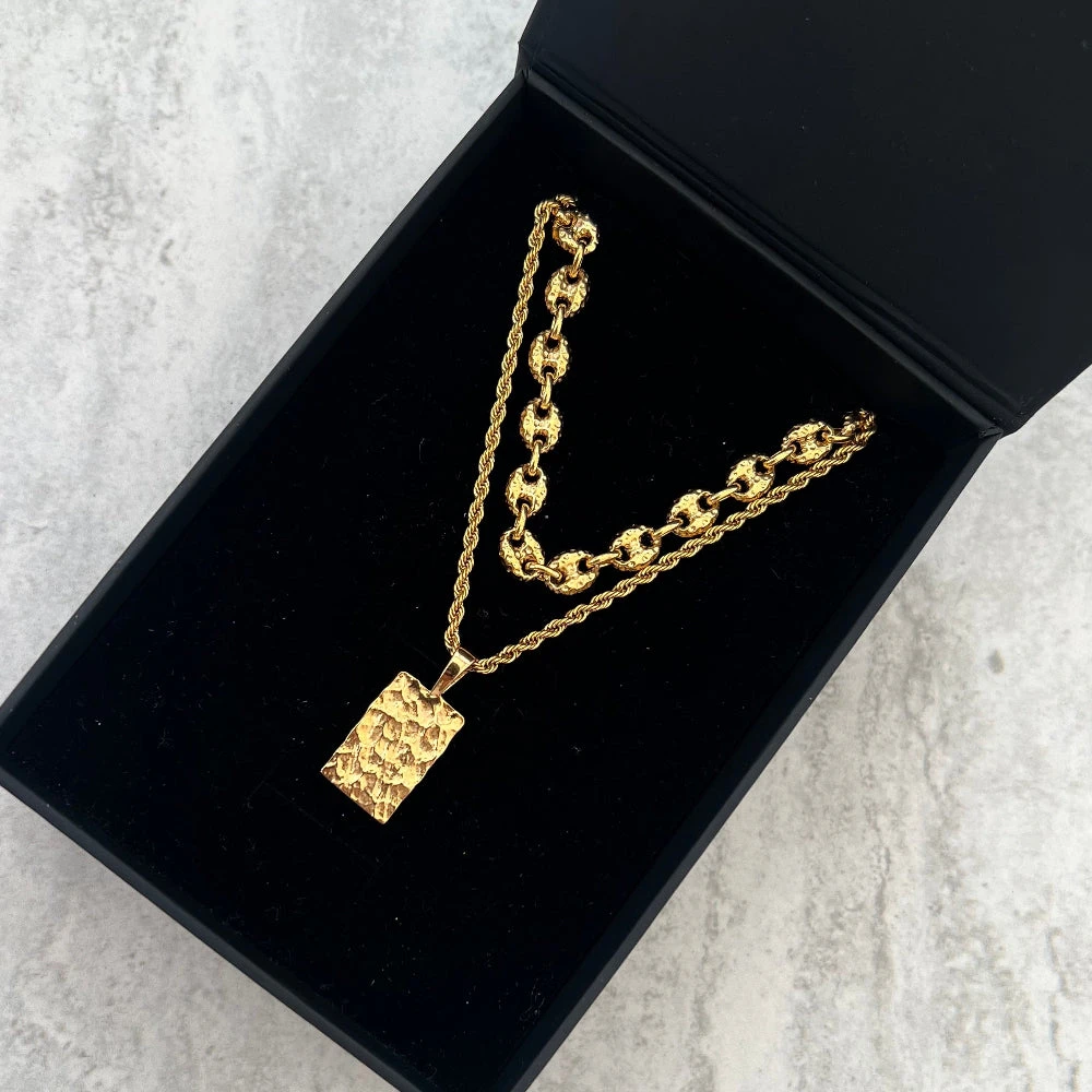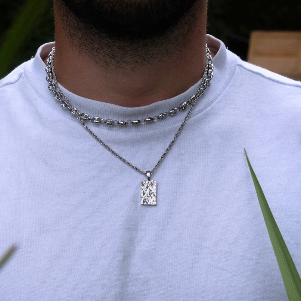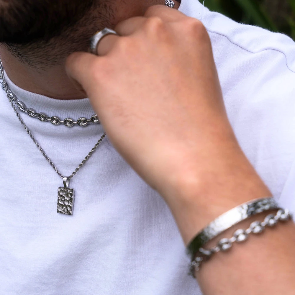 This chain is made from Recycled Stainless Steel. This chain will not tarnish, rust or turn your skin green. Safe to wear in water & is more durable than other materials commonly used such as Silver & Gold.