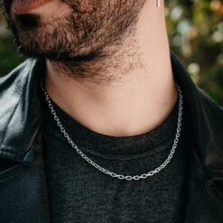 This chain is made from Recycled Stainless Steel. This chain will not tarnish, rust or turn your skin green. Safe to wear in water & is more durable than other materials commonly used such as Silver & Gold.