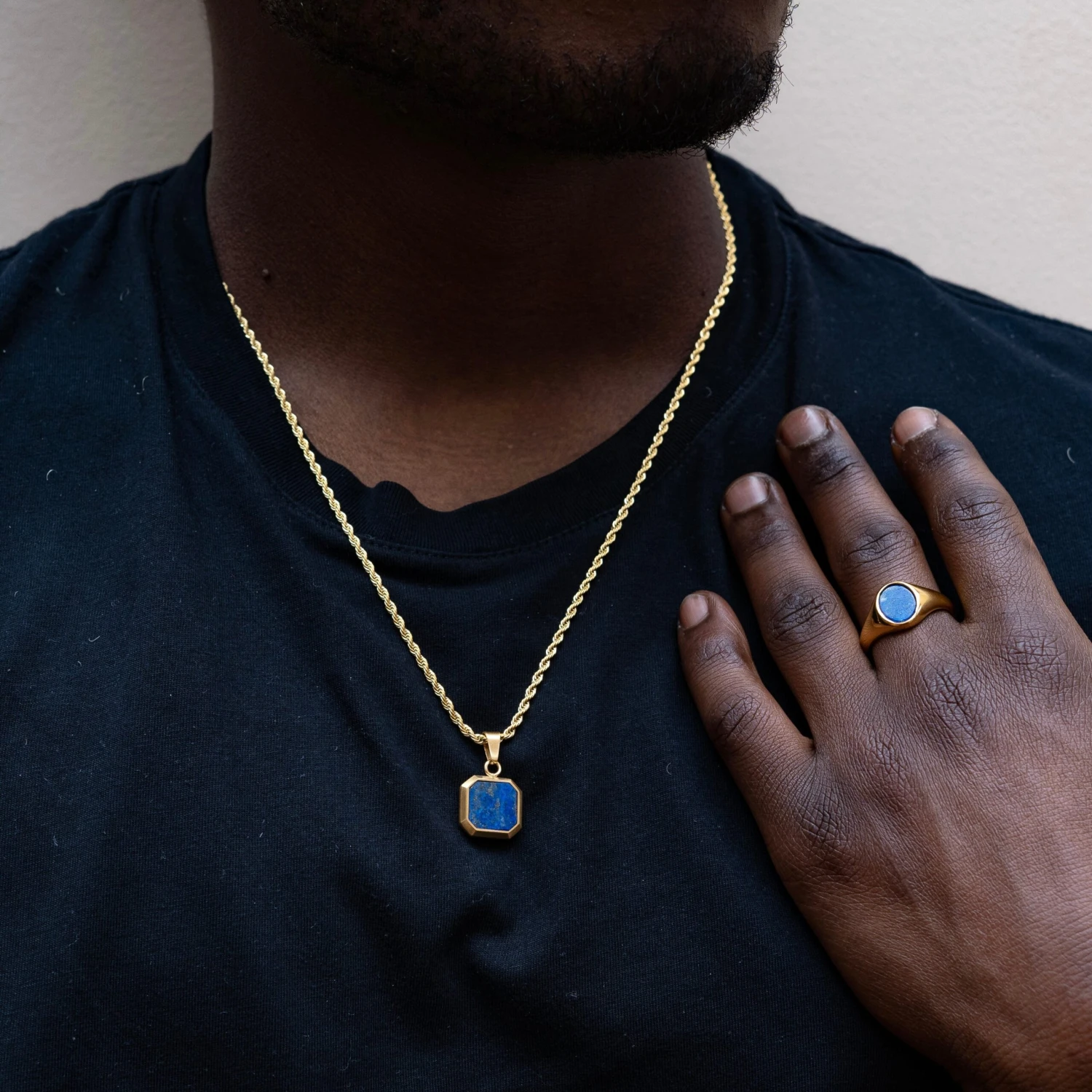 The Lapis Lazuli pendant. Created using real cuts of a Lapis Lazuli stone. Every stone is unique making it the perfect necklace for your unique style. The royal blue finished combined with specs of gold compliment each other creating a luxury finish.