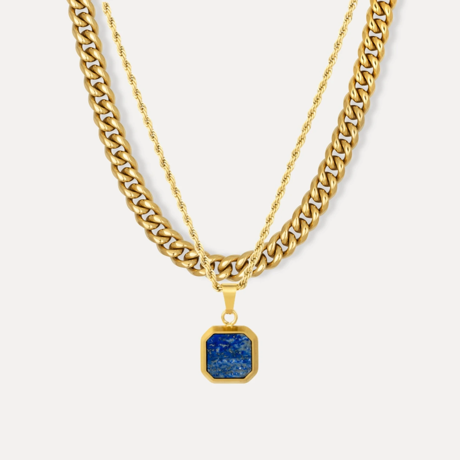 Includes Lapis Lazuli Pendant, 1 x 22″ Rope Chain, and 1 x 8mm Cuban Chain