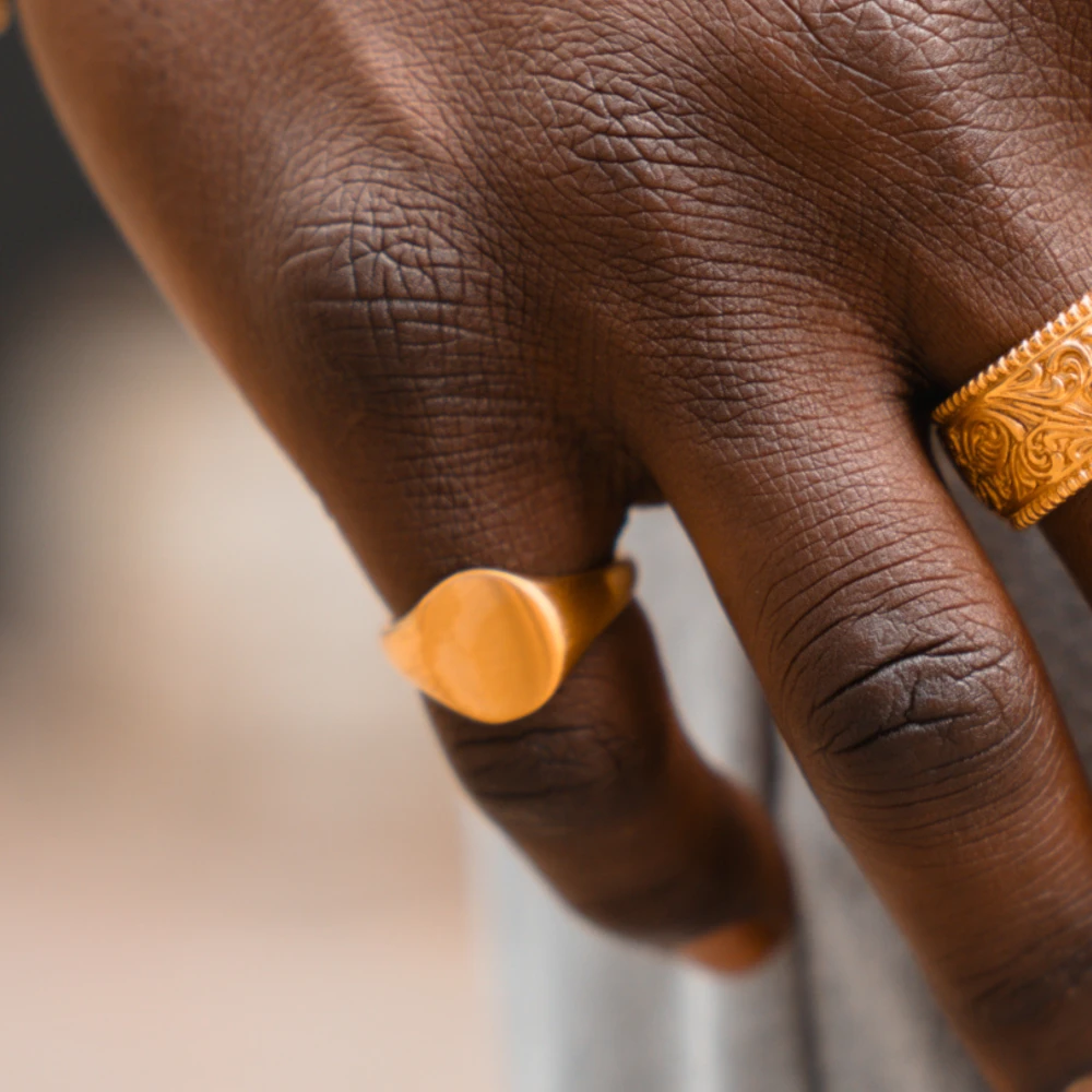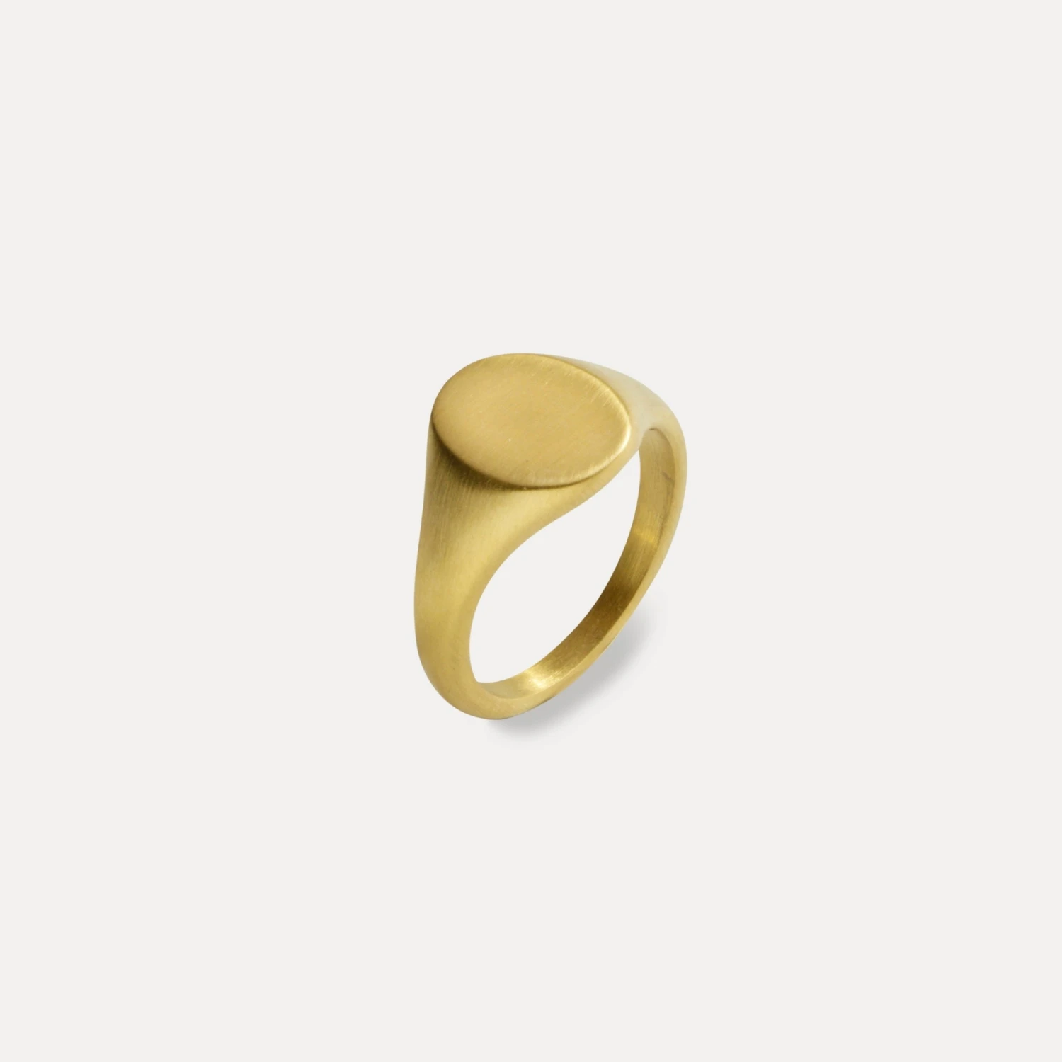 The Matte Signet. Completed with a luxury Brushed 18K Gold finish. A plain signet designed to be simple & classy – perfect for wearing on a daily basis.
