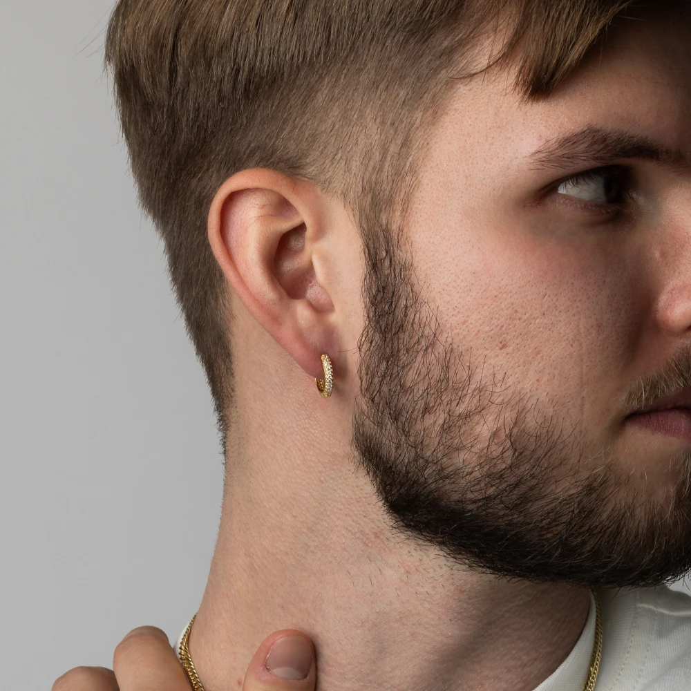 Our 18K Gold 925 Sterling Silver Diamond Hoop Earring, with Tiny Cubic Zirconia Diamonds.