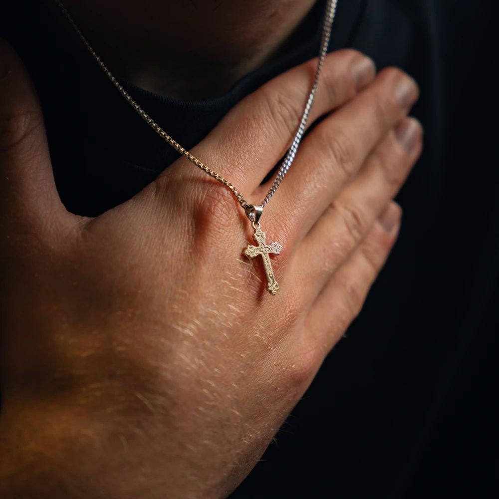 The Micro Vintage Cross. Made from 925 sterling silver with a gold plating.