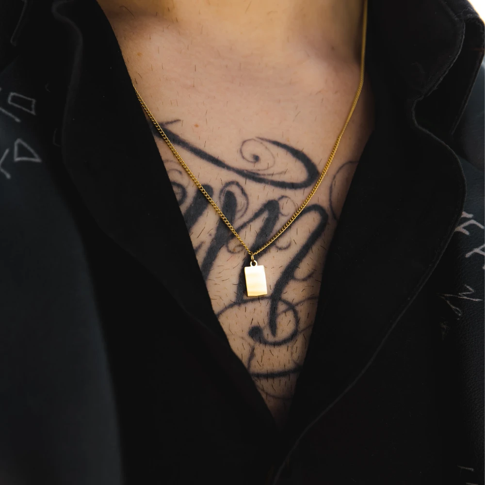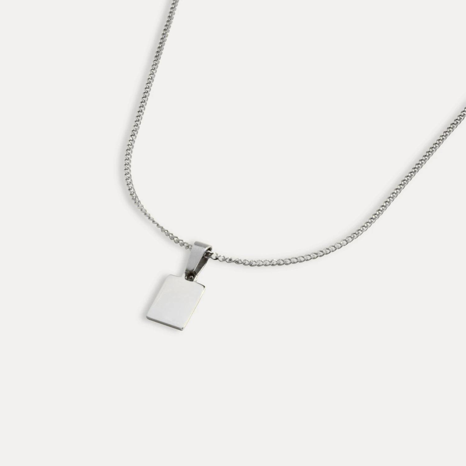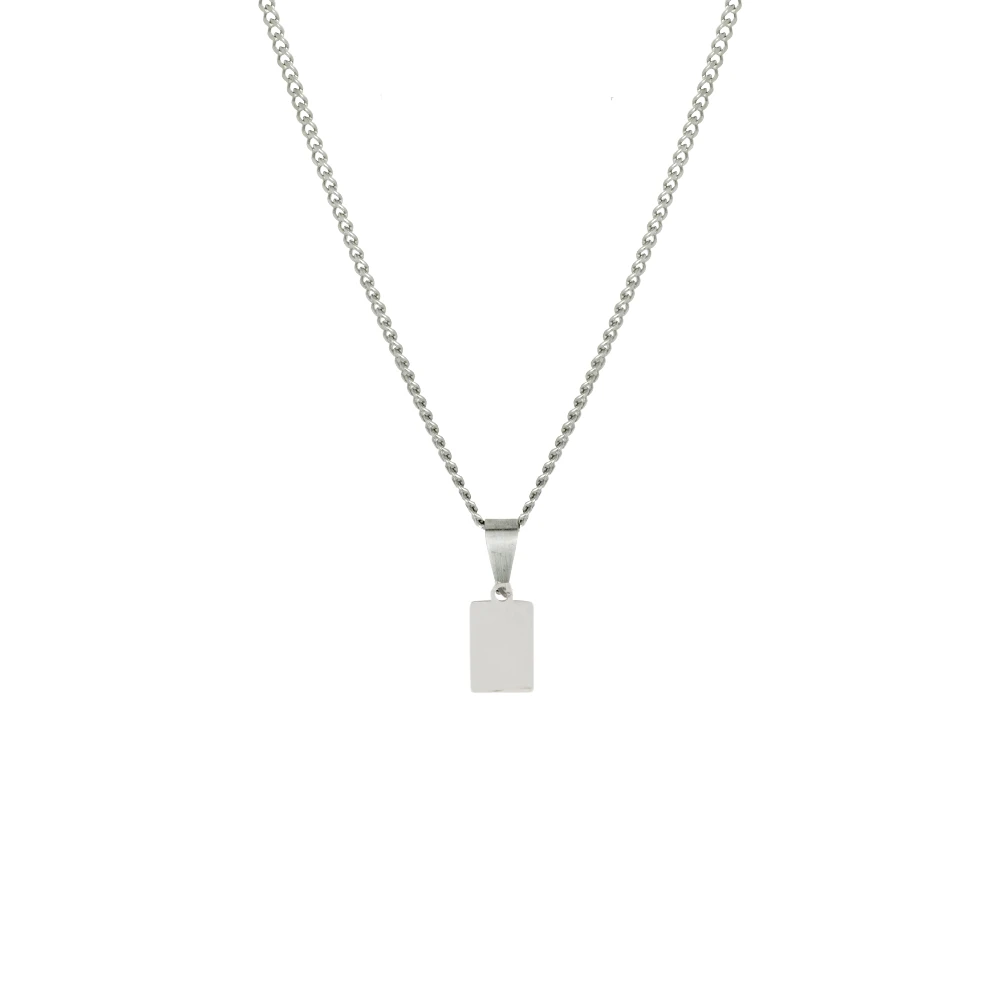 A mini rectangle Silver Bar pendant combined with a thin Cuban chain makes for simple minimalist necklace, perfect for daily wear.