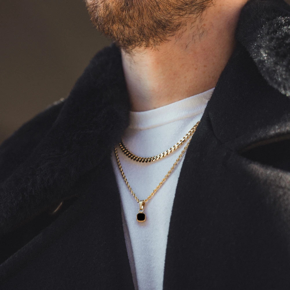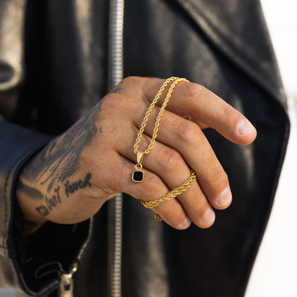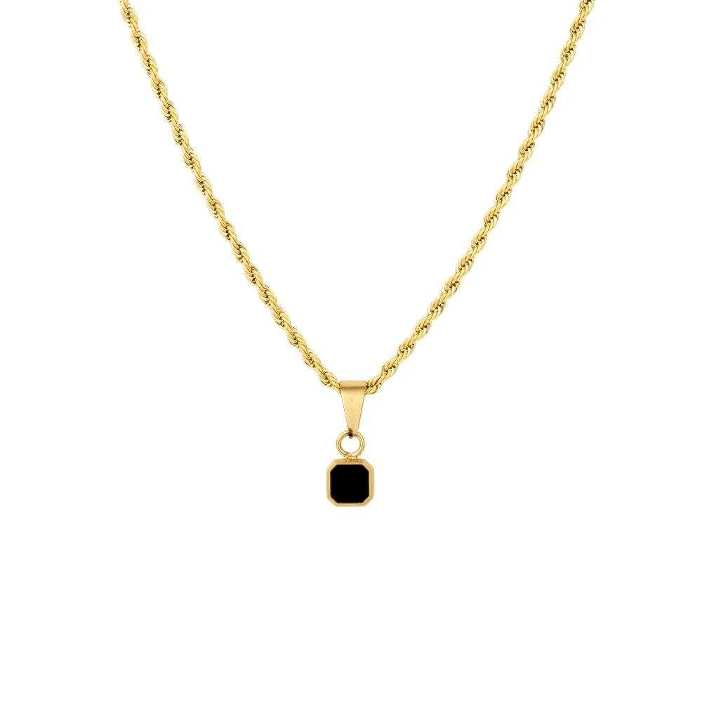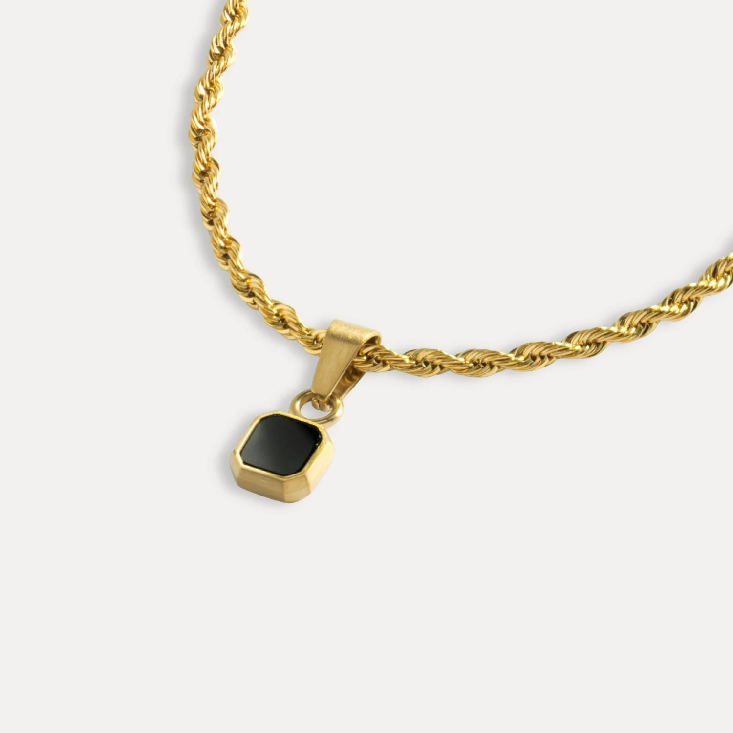 The New Mini Onyx pendant 18K Gold. Created using real cuts of a black onyx stone. Designed to be minimalist and versatile. Wear with a chain, add to a bracelet or even a hoop earring.