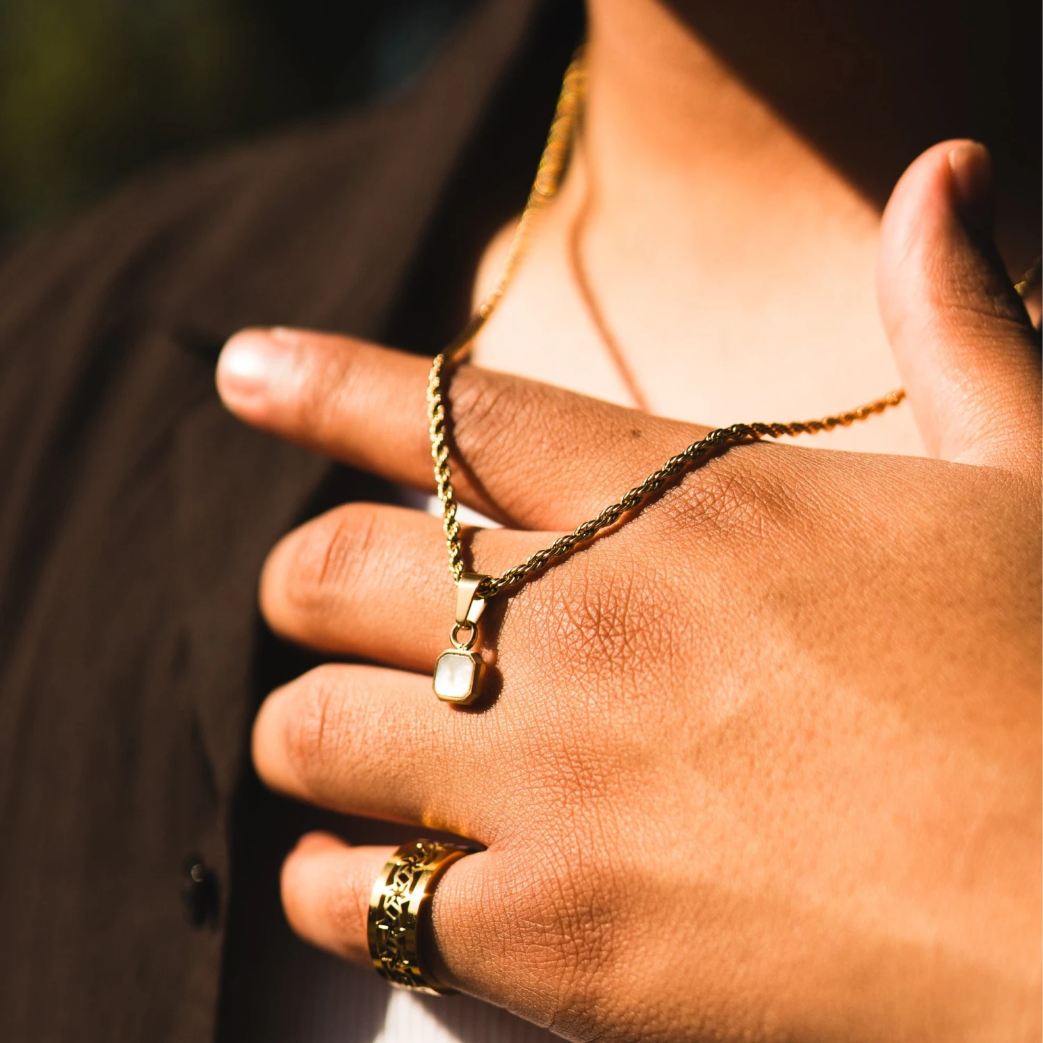 The mini Pearl Stone pendant. Designed with our onyx stone pendant in mind; creating a White stone version of the loved gemstone pendant! Available in Gold or Silver & perfect for layering.
