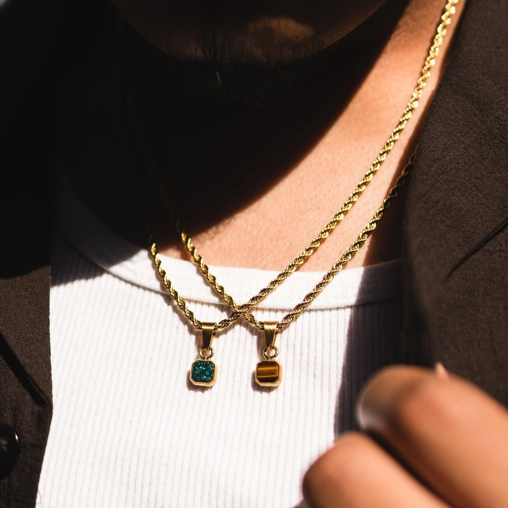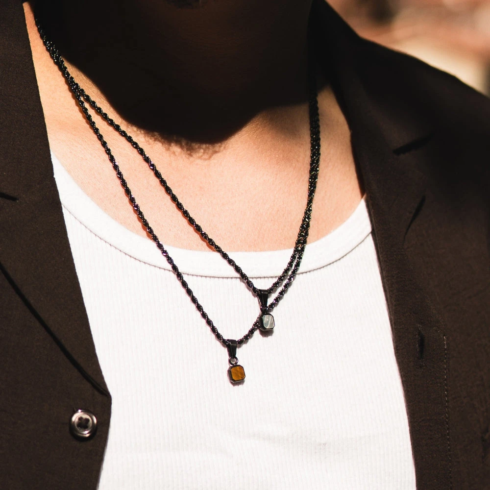 The mini Tigers Eye gemstone pendant – now available in black! Designed with our onyx stone pendant in mind; creating a Uniquely patterned Tigers eye gem perfect for layering!