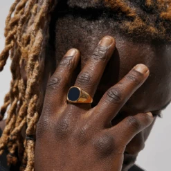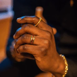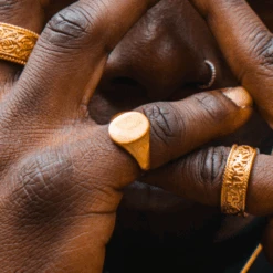 Solid thin band ring perfect for stacking. A great starting layer to add a thicker gold band / signet ring.