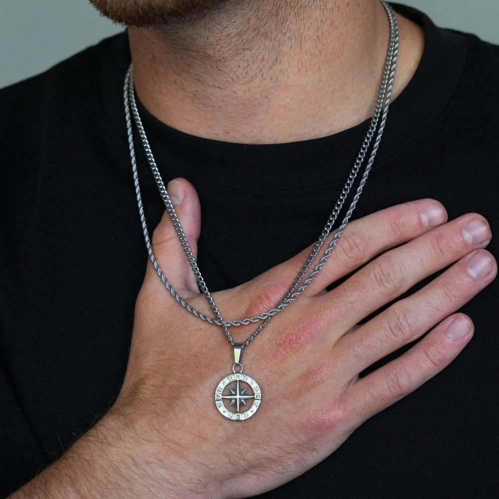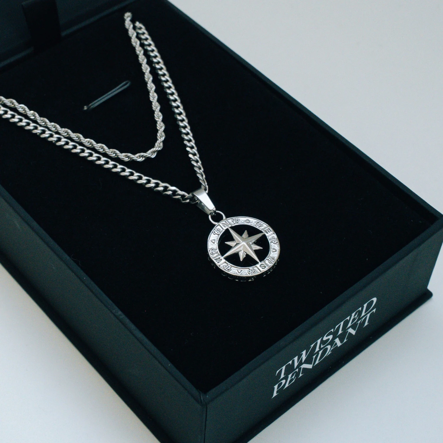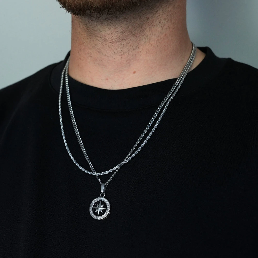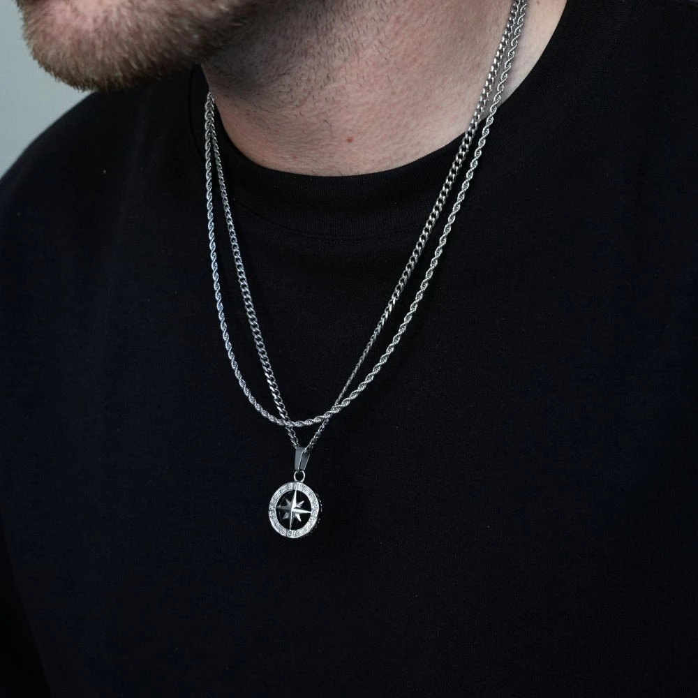 Includes North Star Pendant, 1 x 22″ Cuban Chain, and 1 x Rope Chain