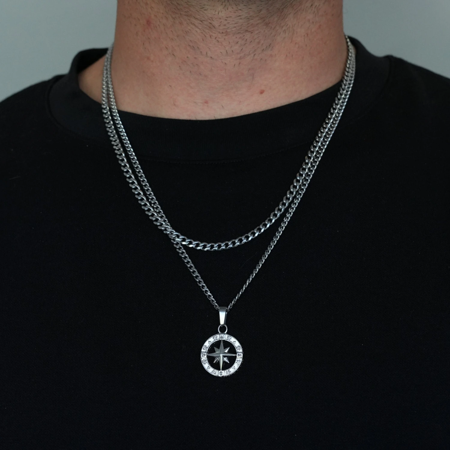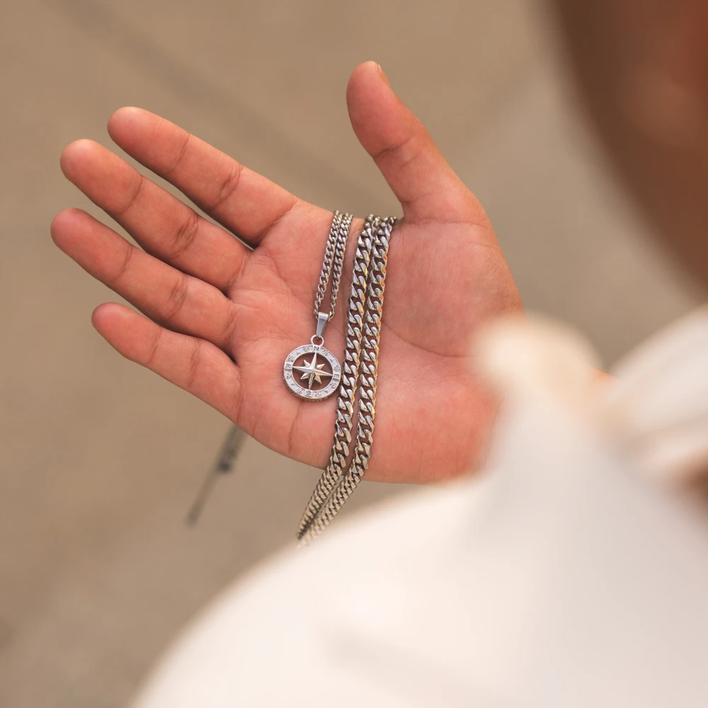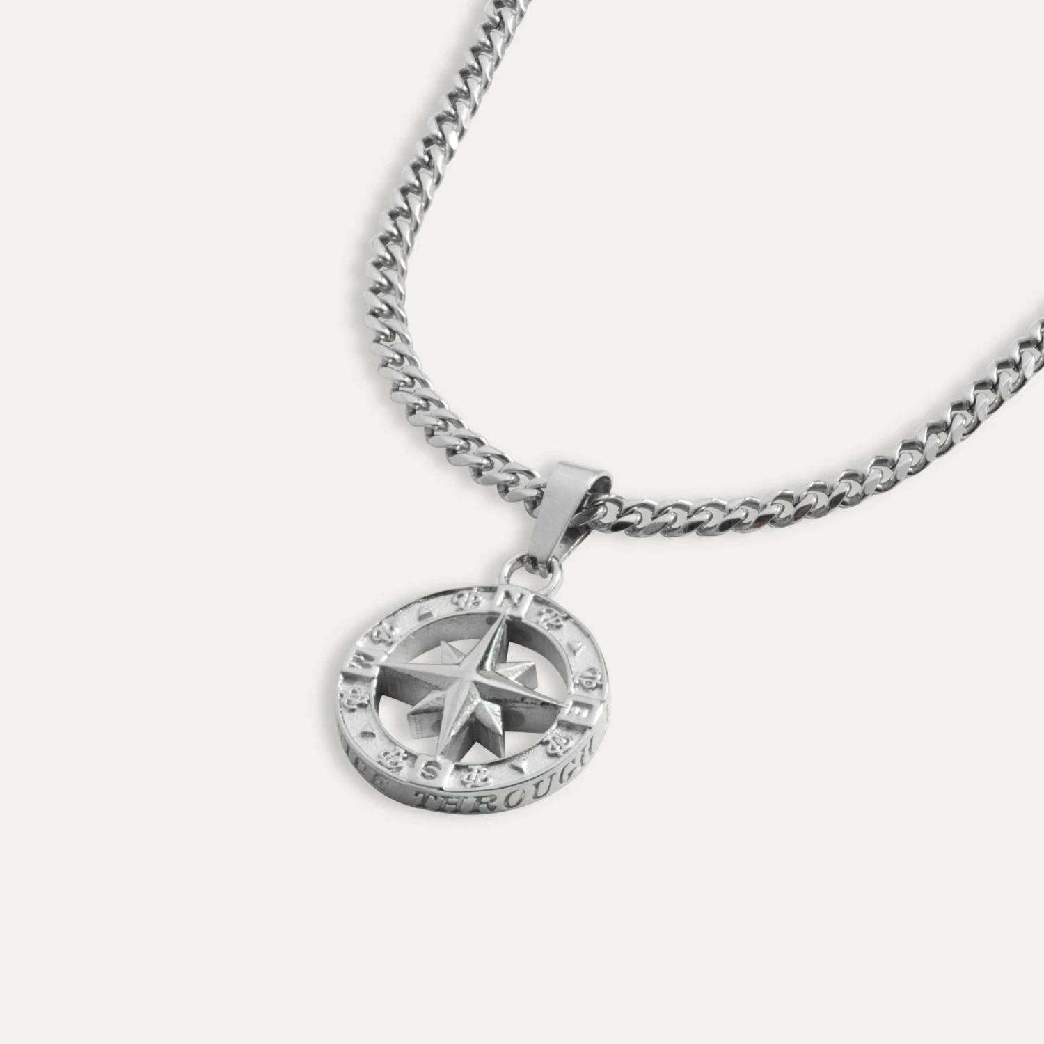 Our New North Star Pendant. A small North Star face with an intricately detailed Outer ring. Engraved with the TP logo & each point of a compass.