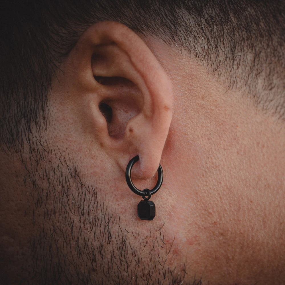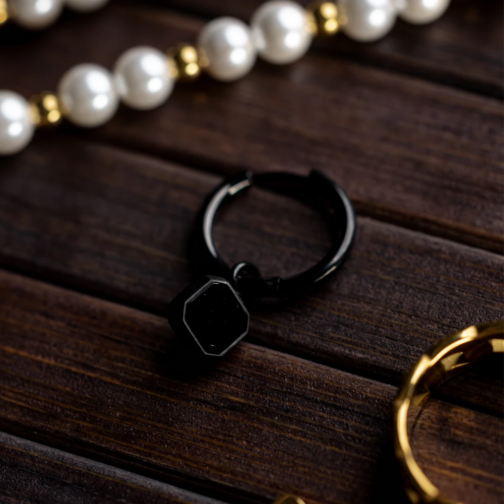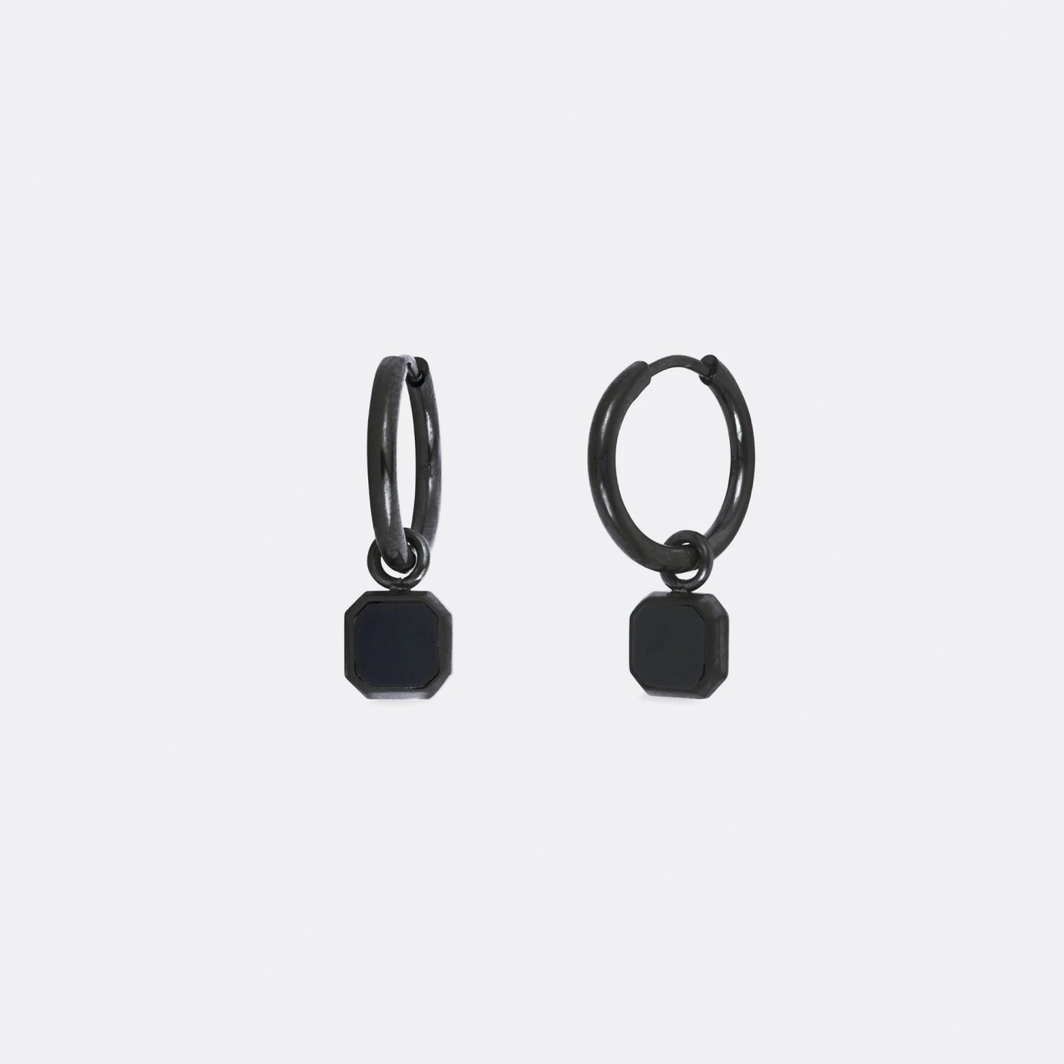 The Onyx dangle. An all black statement dangle perfect for pairing with the all black onyx pendant necklace. The gem can be removed from the hoop.