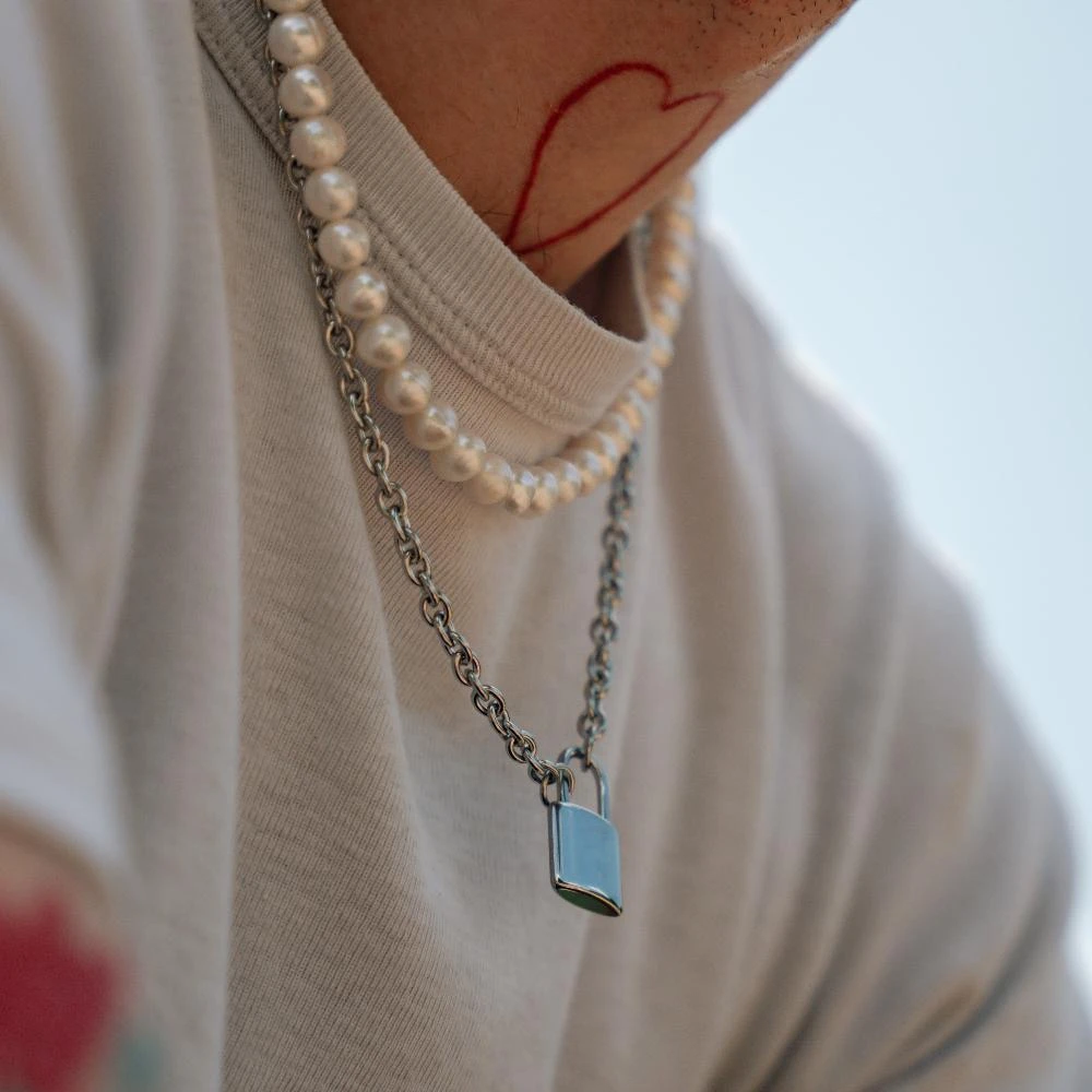 A small stainless steel padlock paired with a cable chain. This piece is perfect for layering with other silver jewellery and a quality essential piece. This is a unisex necklace