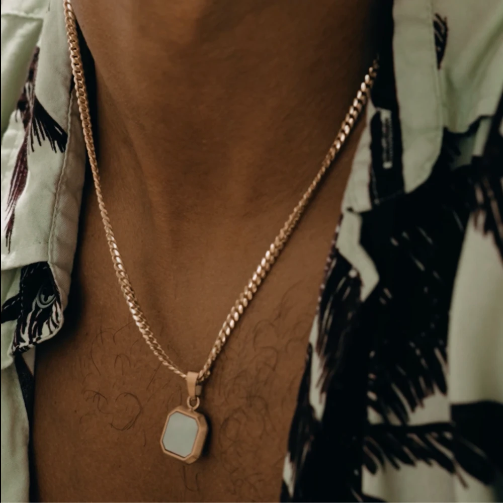 This chain is made from Recycled Stainless Steel. This chain will not tarnish, rust or turn your skin green. Safe to wear in water & is more durable than other materials commonly used such as Silver & Gold.