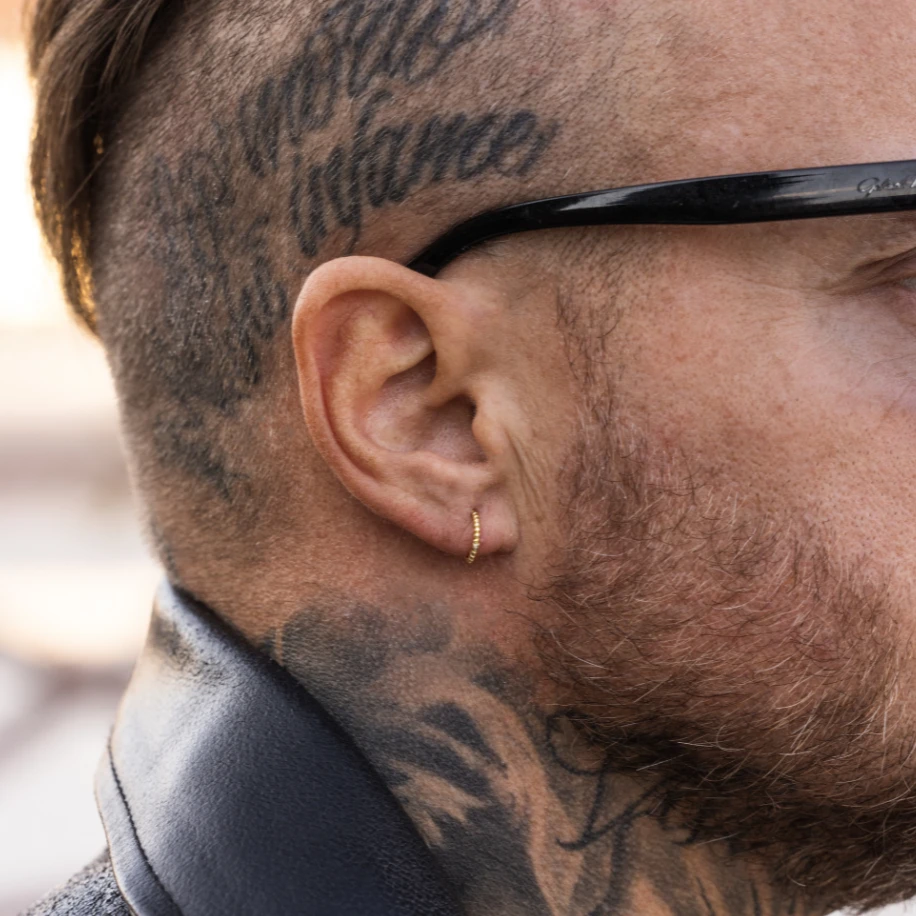 A thin Styled hoop that hangs very close to the ear lobe, a great choice if you’re trying to achieve the Huggie earring look – Please measure to ensure 10mm (1cm) will fit around your ear lobe.