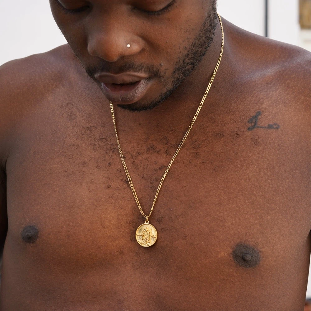 A Gold St Christopher pendant. The patron saint of travel is recognised the world over for keeping a watchful eye over intrepid journey makers; This St Christopher necklace from Twistedpendant is the ideal gift for restless travellers who love adventures.