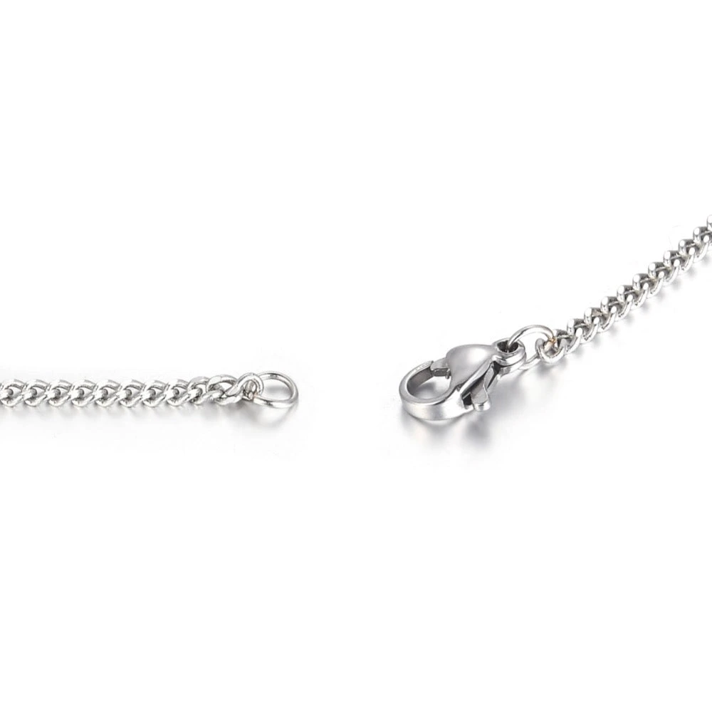This chain is made from Recycled Stainless Steel (Surgical Grade 316L). This chain will not tarnish, rust or turn your skin green. Safe to wear in water & is more durable than other materials commonly used such as Silver & Gold.