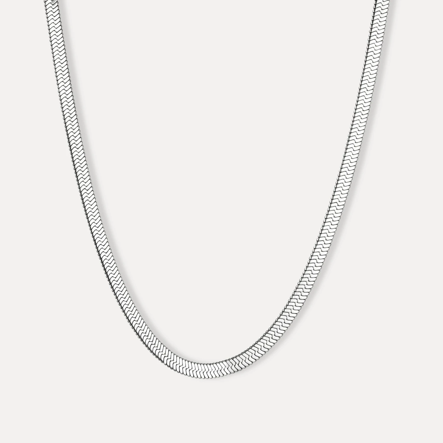 Minimalist flat laying snake chain. Sleek looking chain with a shiny finish.