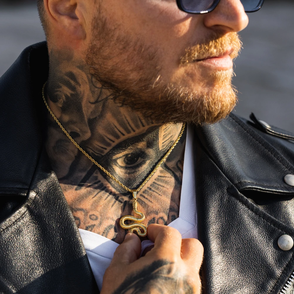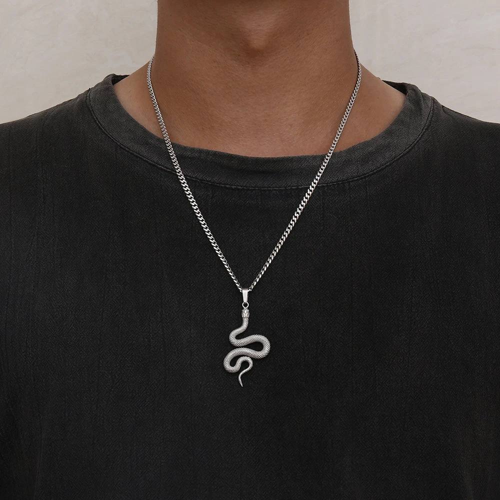 The Snake necklace. An intricately Detailed scales covering the entire front of the pendant. Combined perfectly with a Premium Stainless steel chain in a choice of sizes.