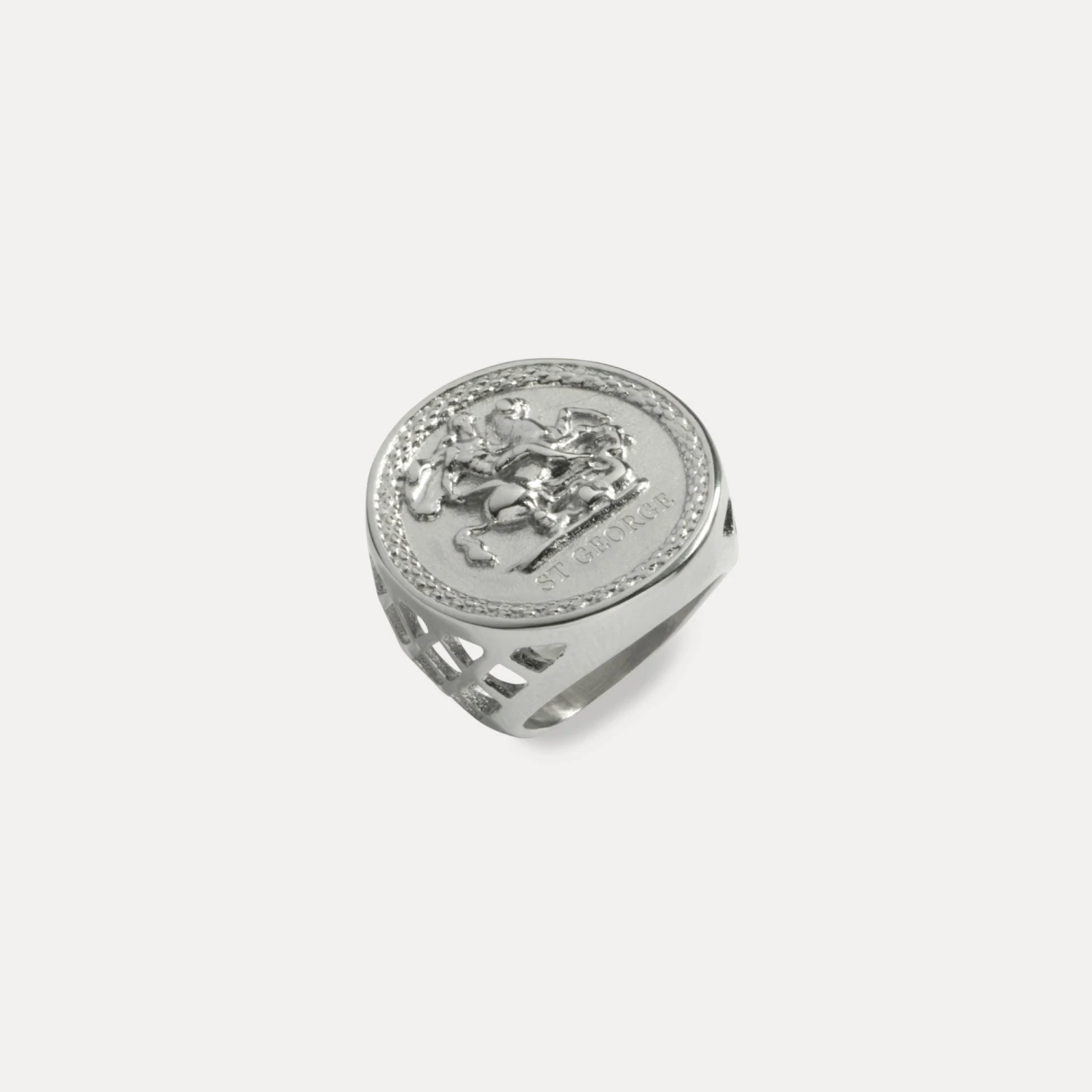 This Detailed St. George Sovereign Ring features medallion engraving on the front. Heavy-weighted large sovereign styled ring perfect for daily wear.