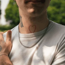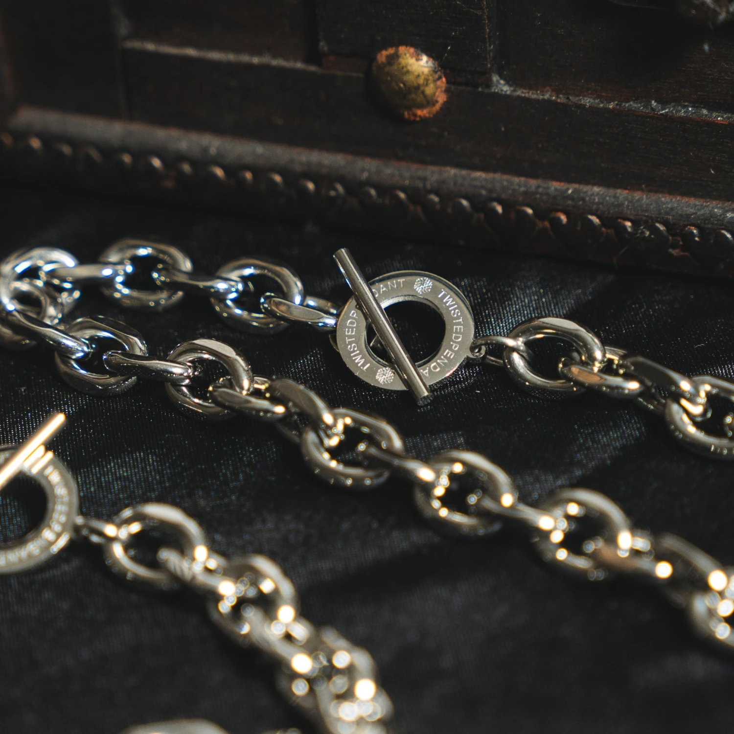 This chain is made from Recycled Stainless Steel. This chain will not tarnish, rust or turn your skin green. Safe to wear in water & is more durable than other materials commonly used such as Silver & Gold.