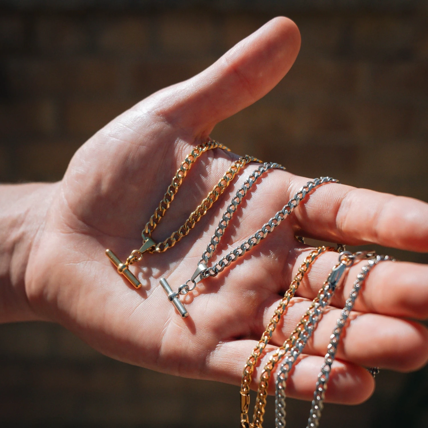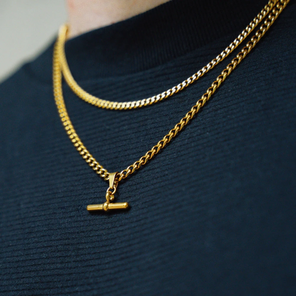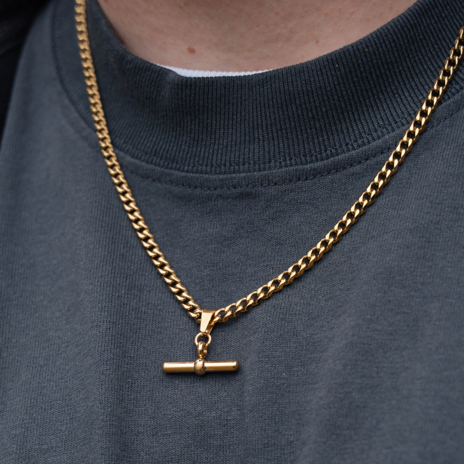 The T-Bar pendant. A minimal detailed pendant on a 4mm cuban chain.