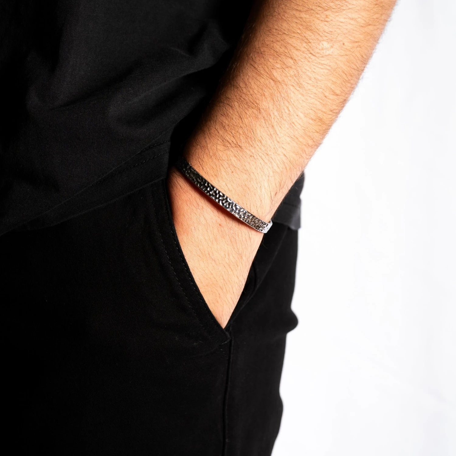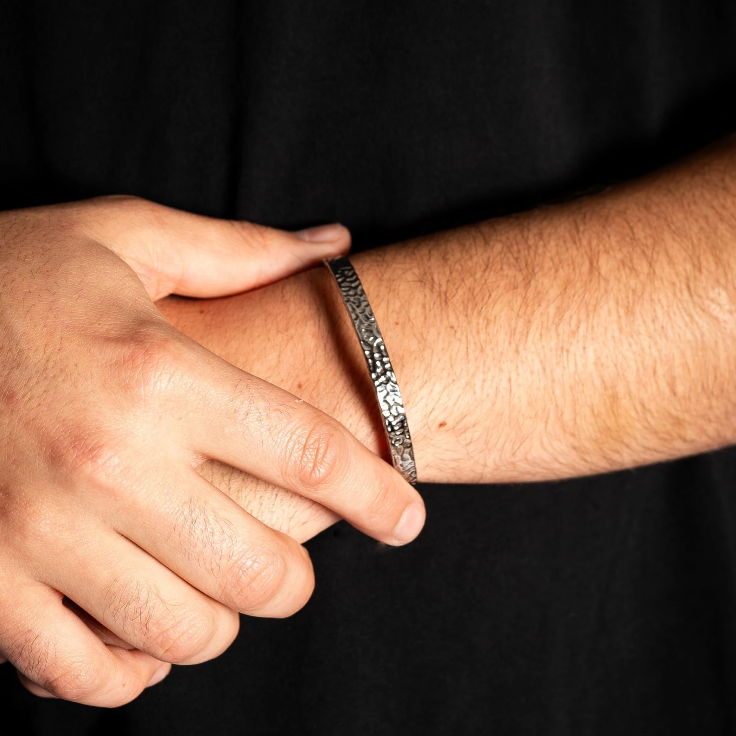 Our classic hammered cuff made thinner. Made to be worn. Adjustable design with a hammered texture finish.