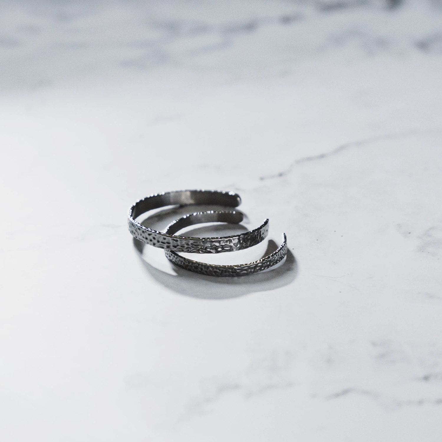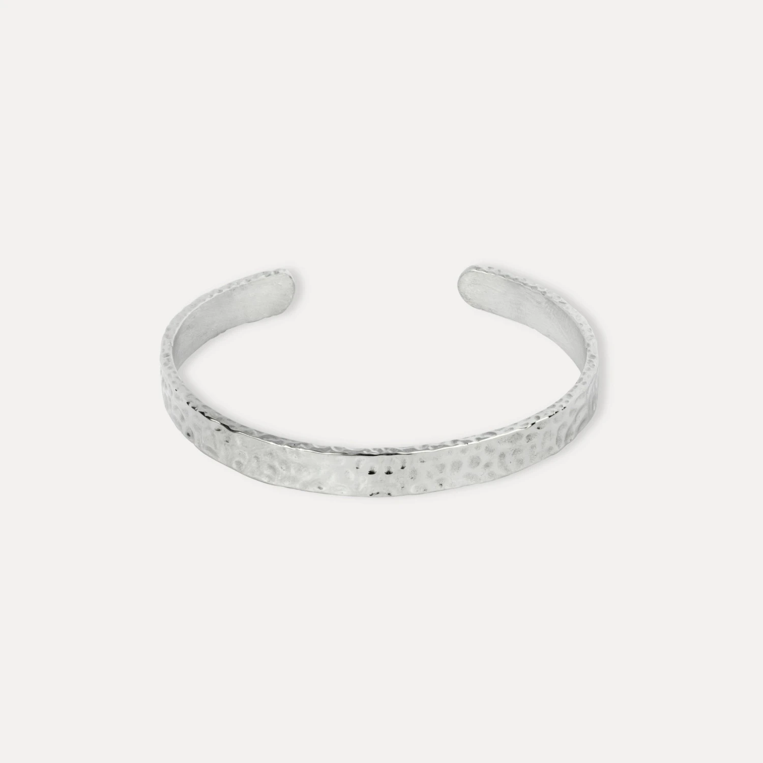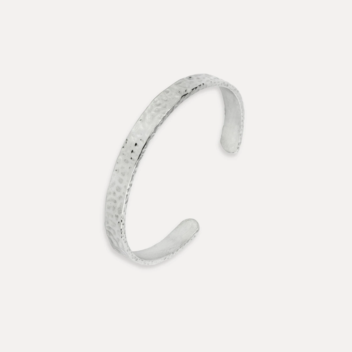 Our classic Silver hammered cuff made thinner. Made to be worn. Adjustable design with a hammered texture finish.