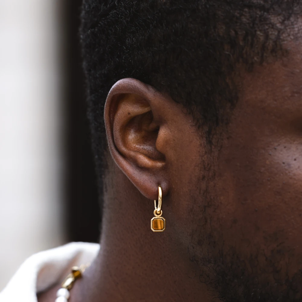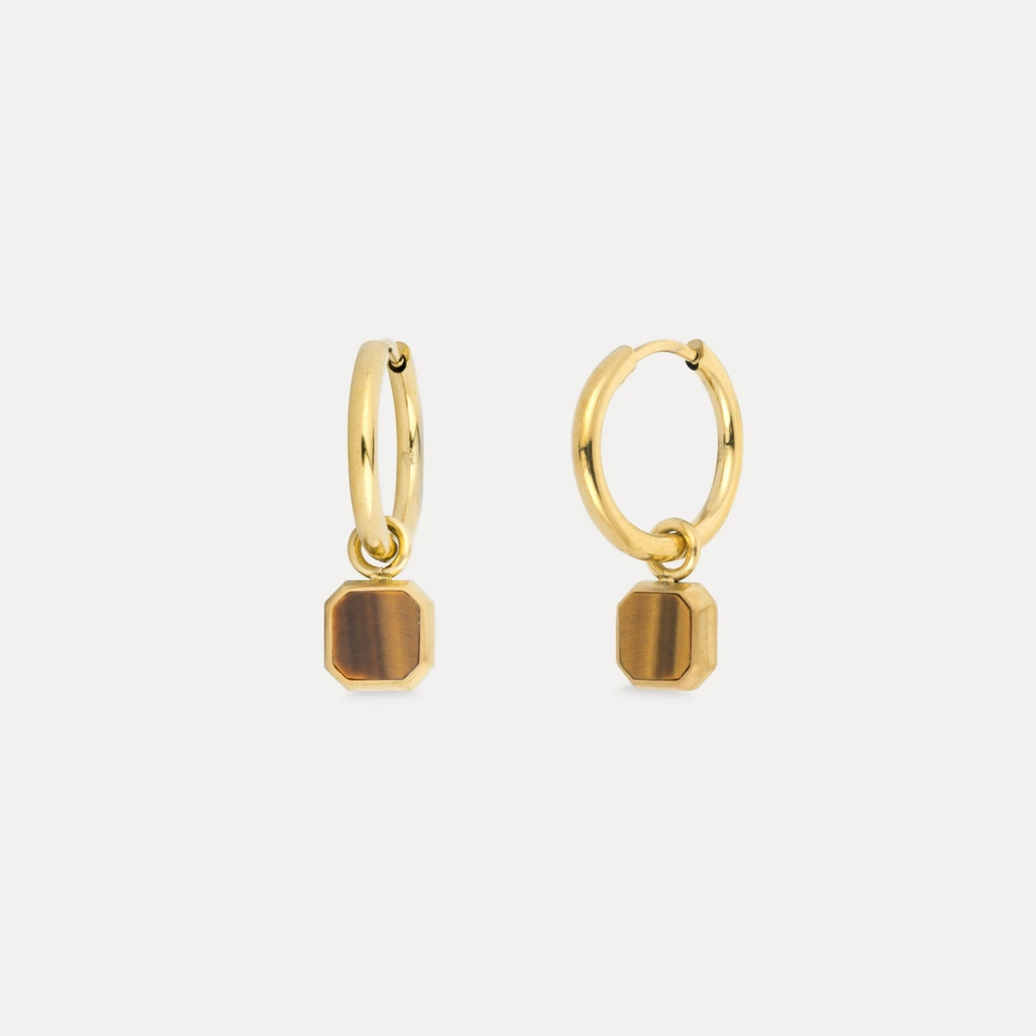 The New Mini Tigers Eye Dangle. A dangle encompassing a cut tigers eye gem in a stainless steel charm.