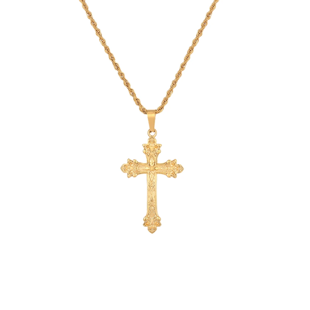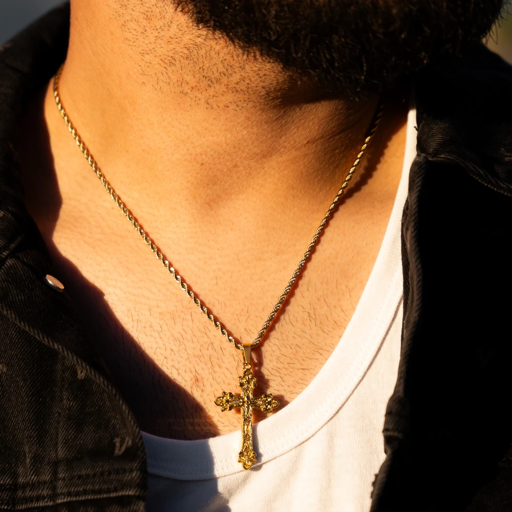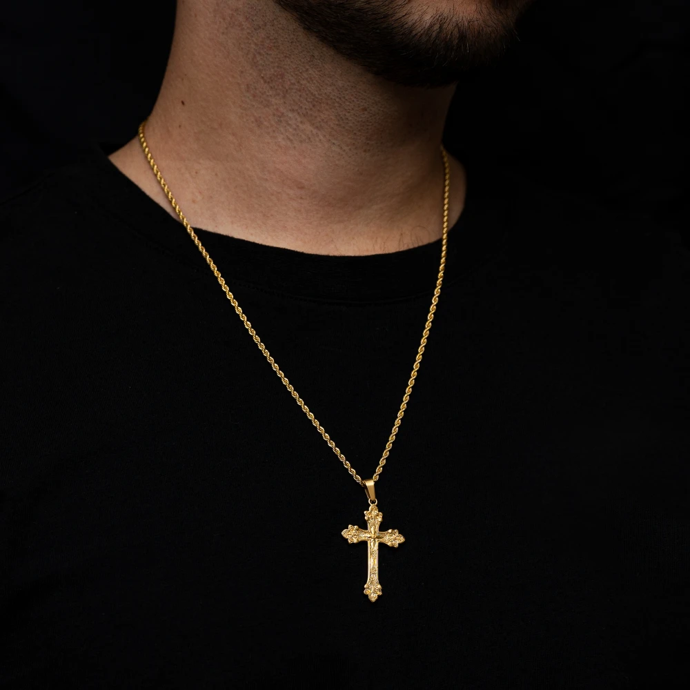 The large Vintage Cross Pendant necklace. A statement layer piece or a solo necklace. The Large pendant combined with the twisted rope chain is a fusion of minimalist & classy Style.