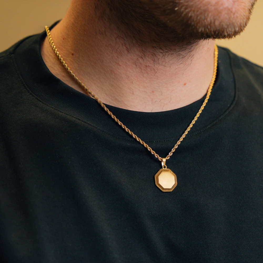 This chain is made from Recycled Stainless Steel. This chain will not tarnish, rust or turn your skin green. Safe to wear in water & is more durable than other materials commonly used such as Silver & Gold.