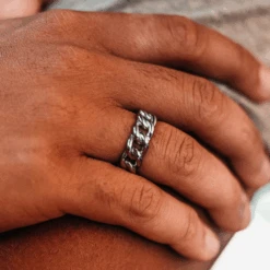 This ring is made from Recycled Stainless Steel (Surgical Grade 316L). This ring will not tarnish, rust or turn your skin green. Safe to wear in water & is more durable than other materials commonly used such as Silver & Gold.