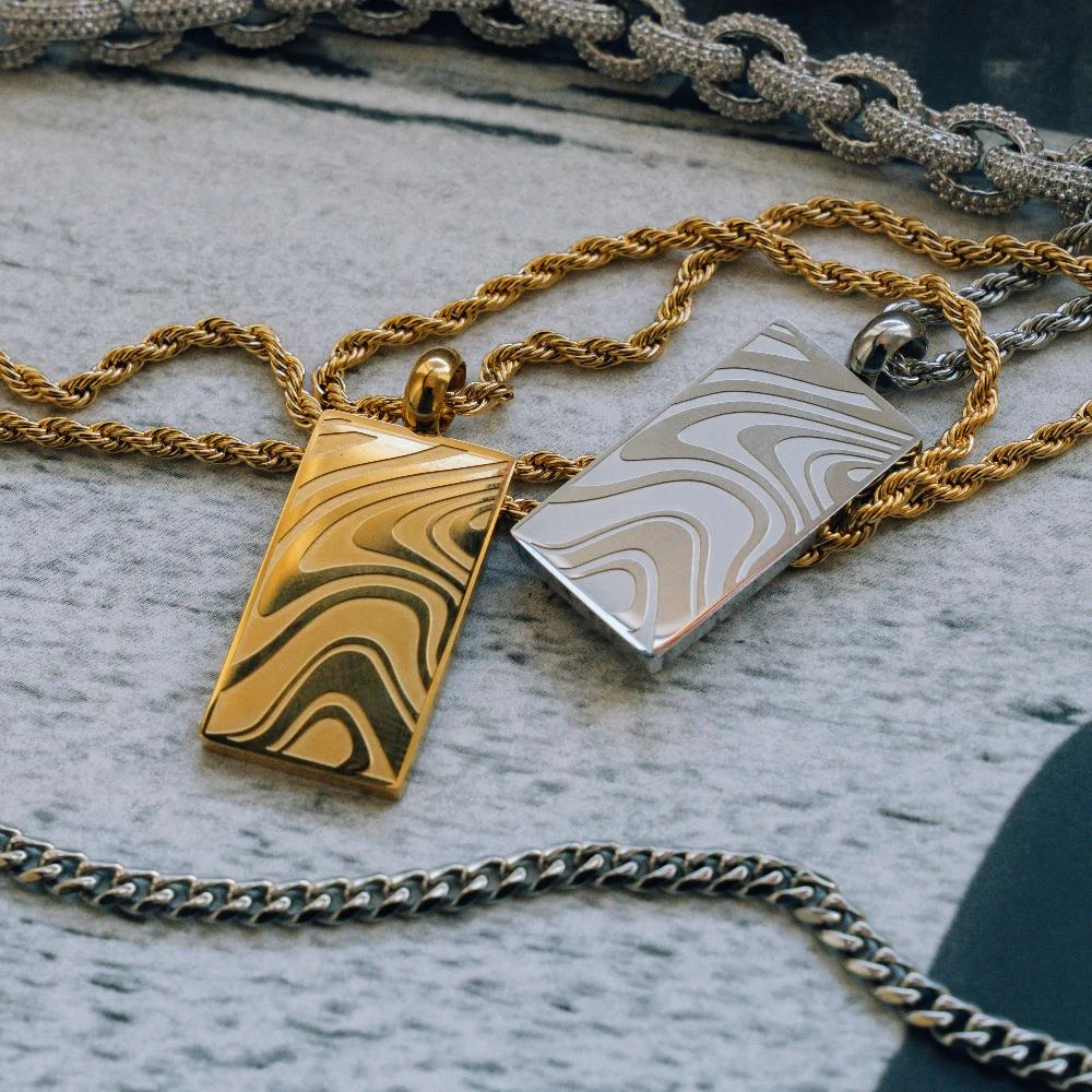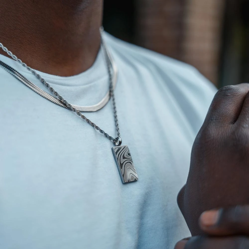 Wave / Illusion pendant. A continuous pattern across a large rectangle pendant.